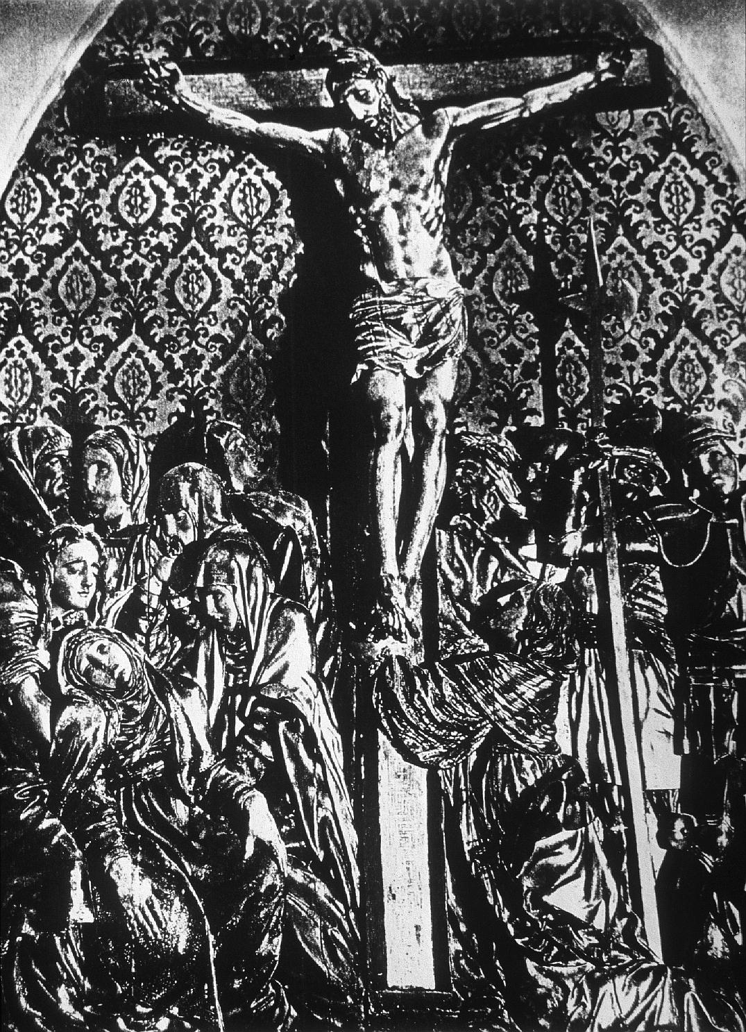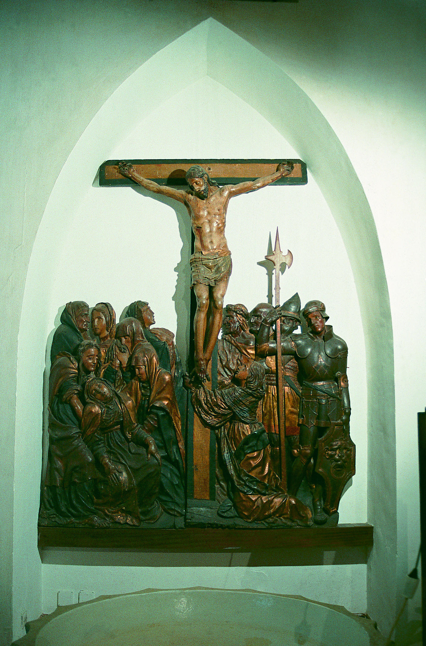 Encargado por la Cofradía del Corpus Christi a principios del siglo XVI, este retablo fue concebido como marco del grupo escultórico del Calvario: en el centro, la escultura de bulto redondo del Crucificado y, a los lados, en altorrelieve, la Virgen, la Magdalena y San Juan, a la izquierda, y grupos de judíos y soldados, a la derecha. En su origen contaba con un fondo paisajístico en bajorrelieve, que representaba las murallas de Jerusalén, realizado en yeso policromado.