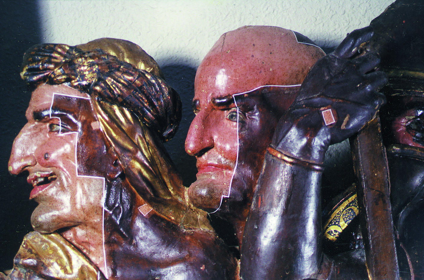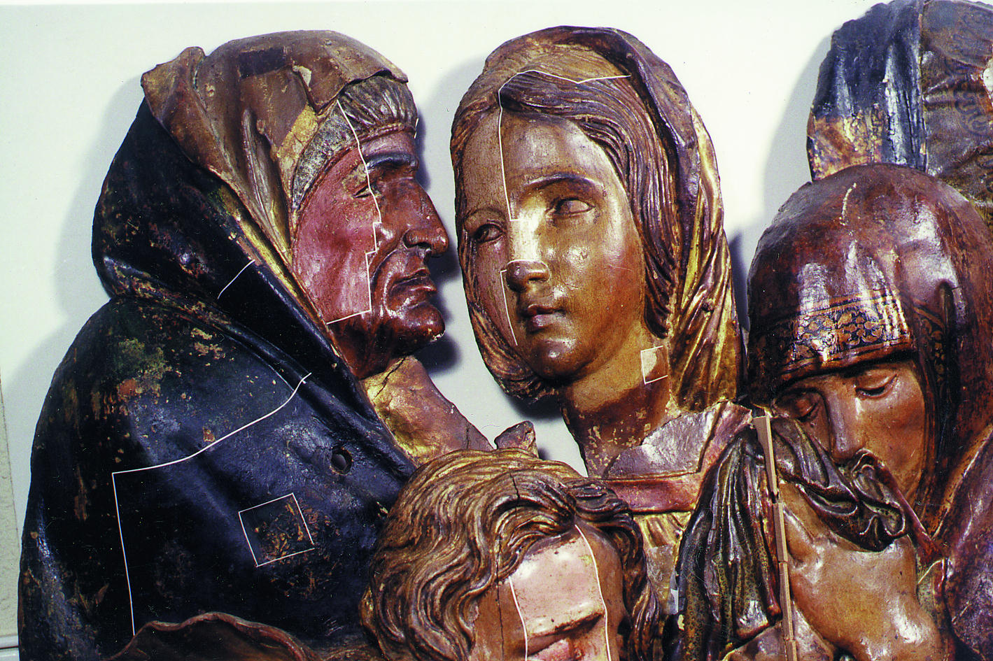 En zonas puntuales de la policromía, el dorado y la madera fue necesario realizar un tratamiento de emergencia de consolidación y fijación. Seguidamente se procedió a la limpieza de las uniones abiertas entre los distintos tablones que componen el conjunto. Se desinsectó, se consolidó la madera y se rellenaron las grietas y desuniones con finas chuletas de madera curada y pasta de madera. Las zonas desencoladas se encolaron y diversos elementos metálicos se sustituyeron por espigas de madera curada y tratada.
