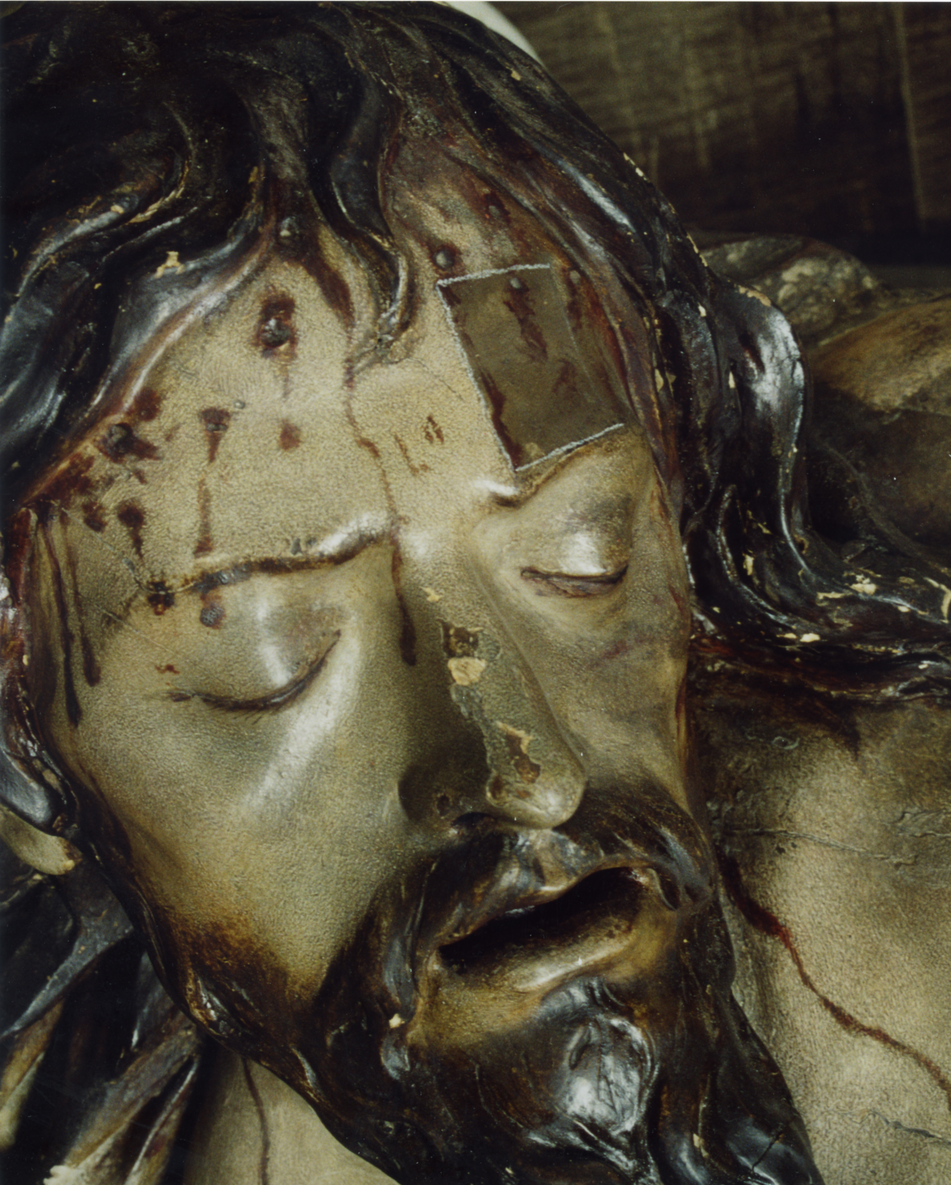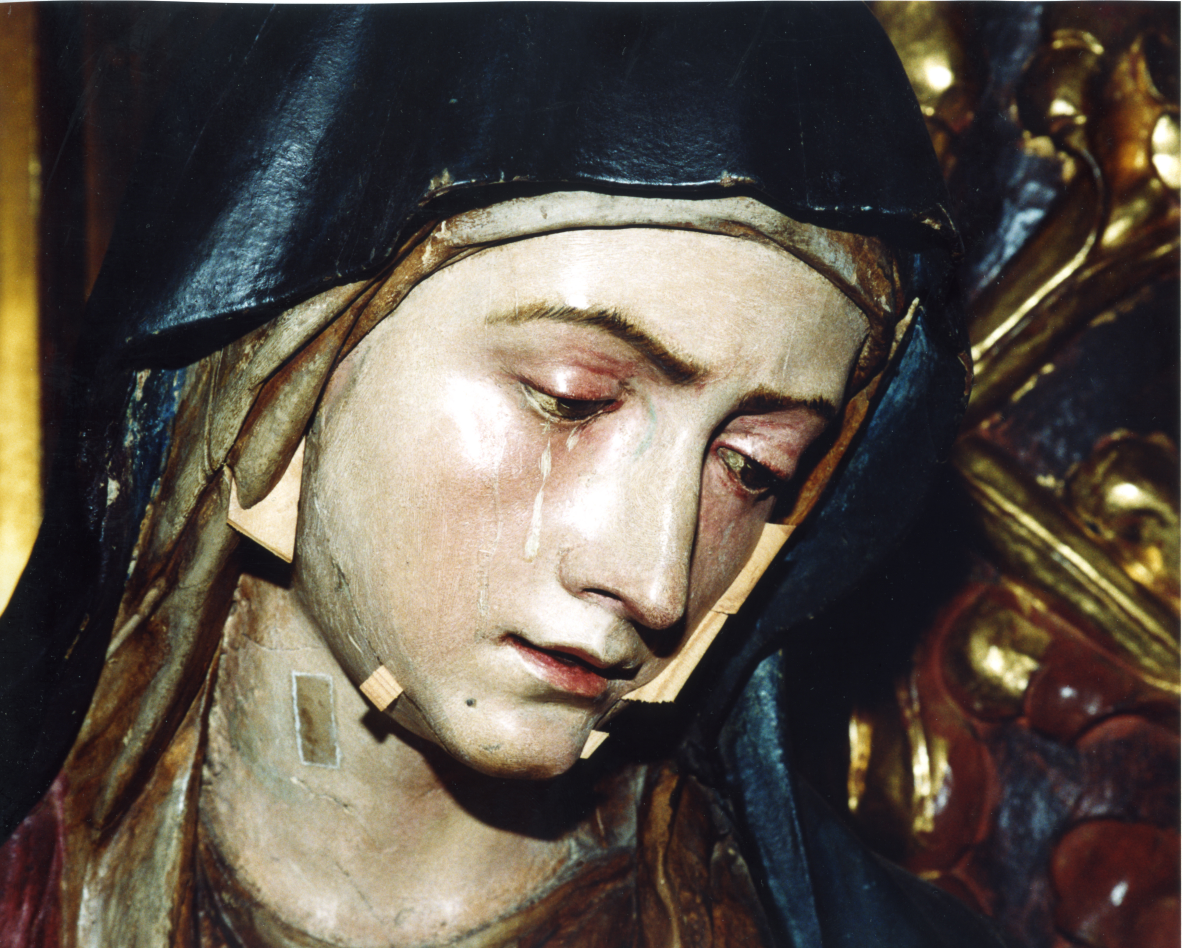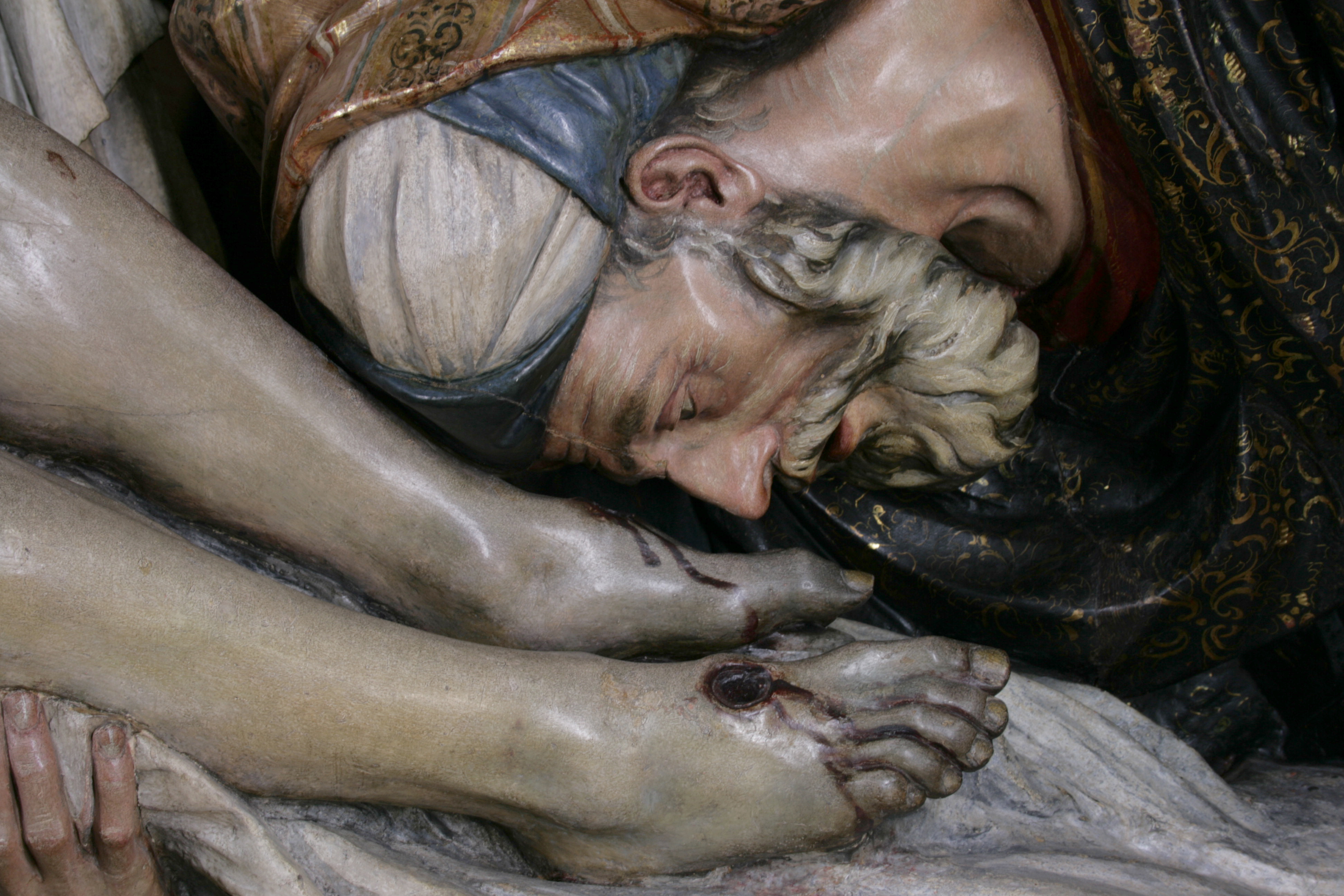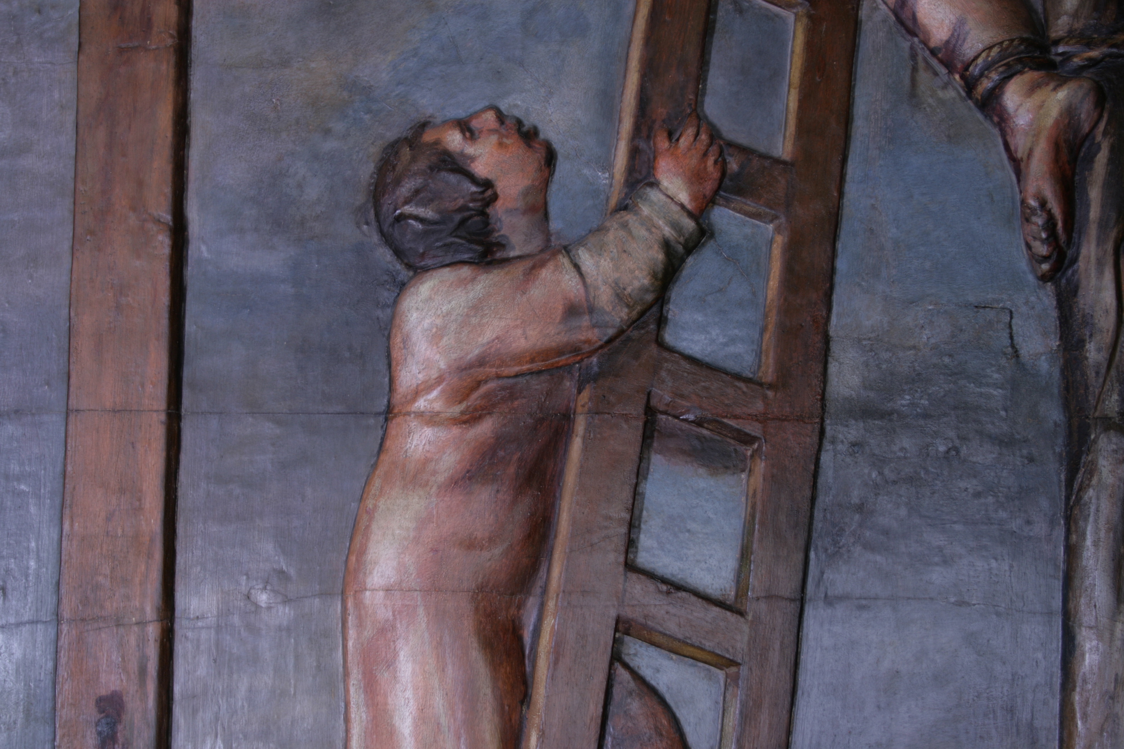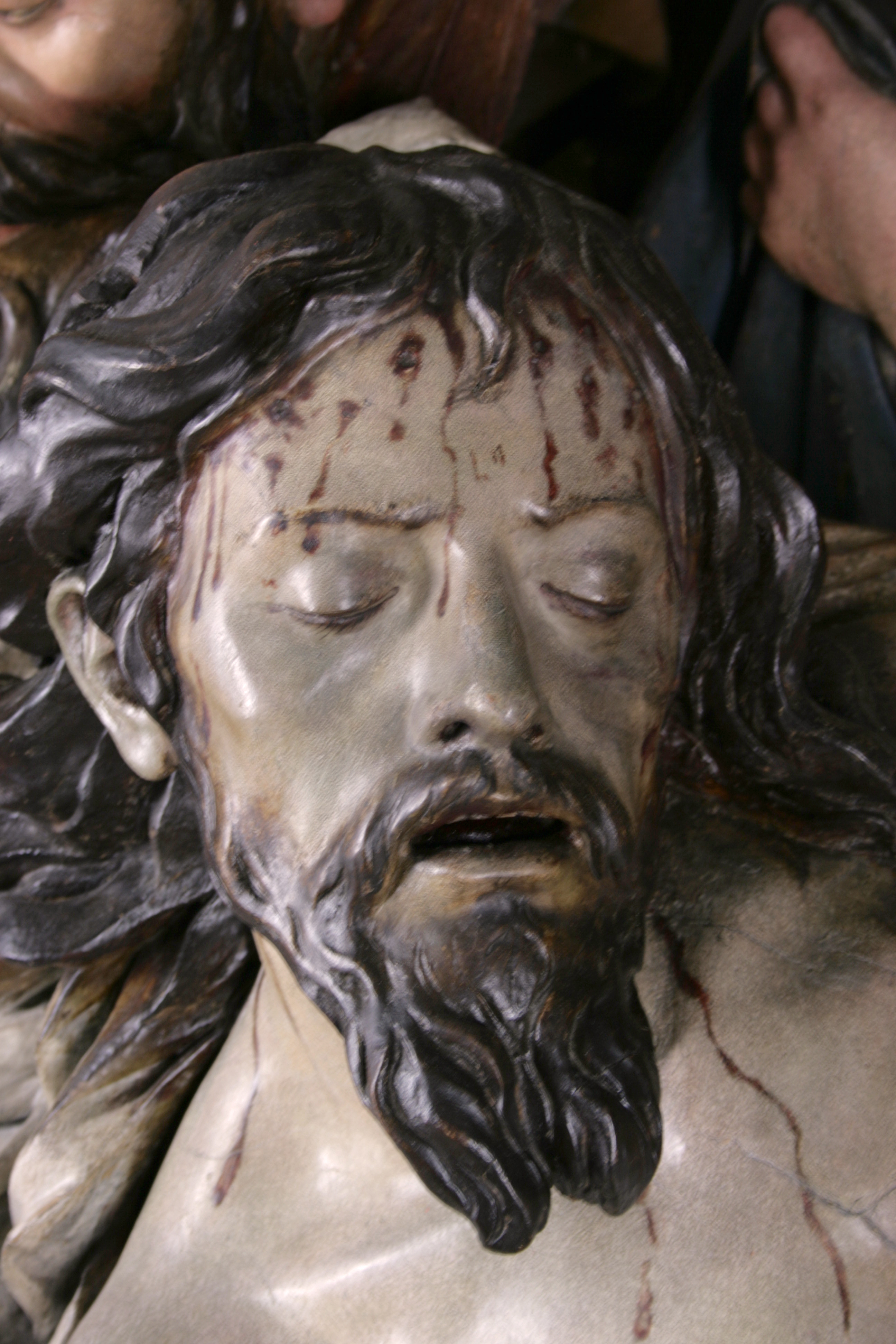 Finalizadas las labores de limpieza y eliminación de repintes, aparecieron sobre la policromía original estucos antiguos procedentes de anteriores restauraciones. Estos se retiraron de manera meticulosa ya que eran extremadamente duros y el único método eficaz fue el mecánico.