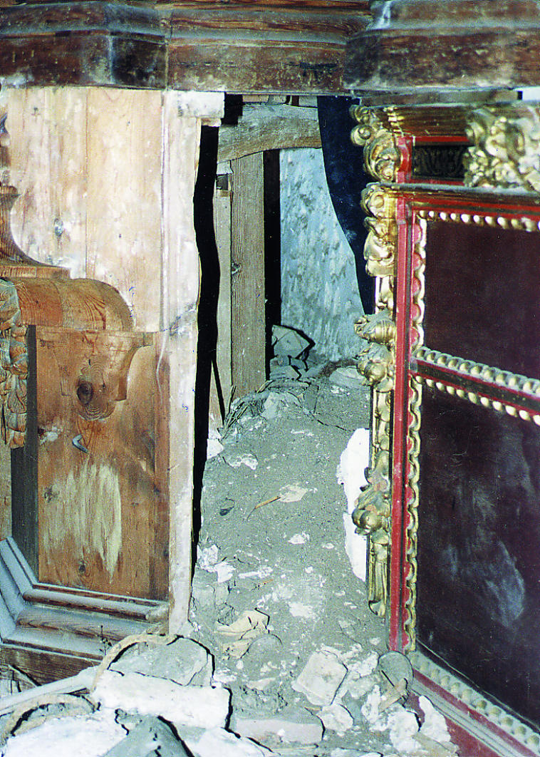Ambos retablos se encontraban en una situación delicada debido al precario estado de los muros, que presentaban profundas grietas.