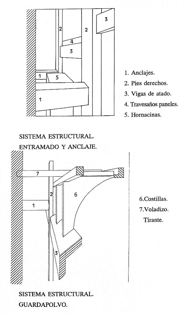 Una vez desmontado el retablo, se procedió a la retirada de escombros y al resanado del muro trasero. Las vigas de anclaje se eliminaron para reemplazarlas por otras nuevas realizadas en pino tea, previamente tratadas y ancladas con “cajines” de acero inoxidable sujetos al muro mediante tacos de expansión.