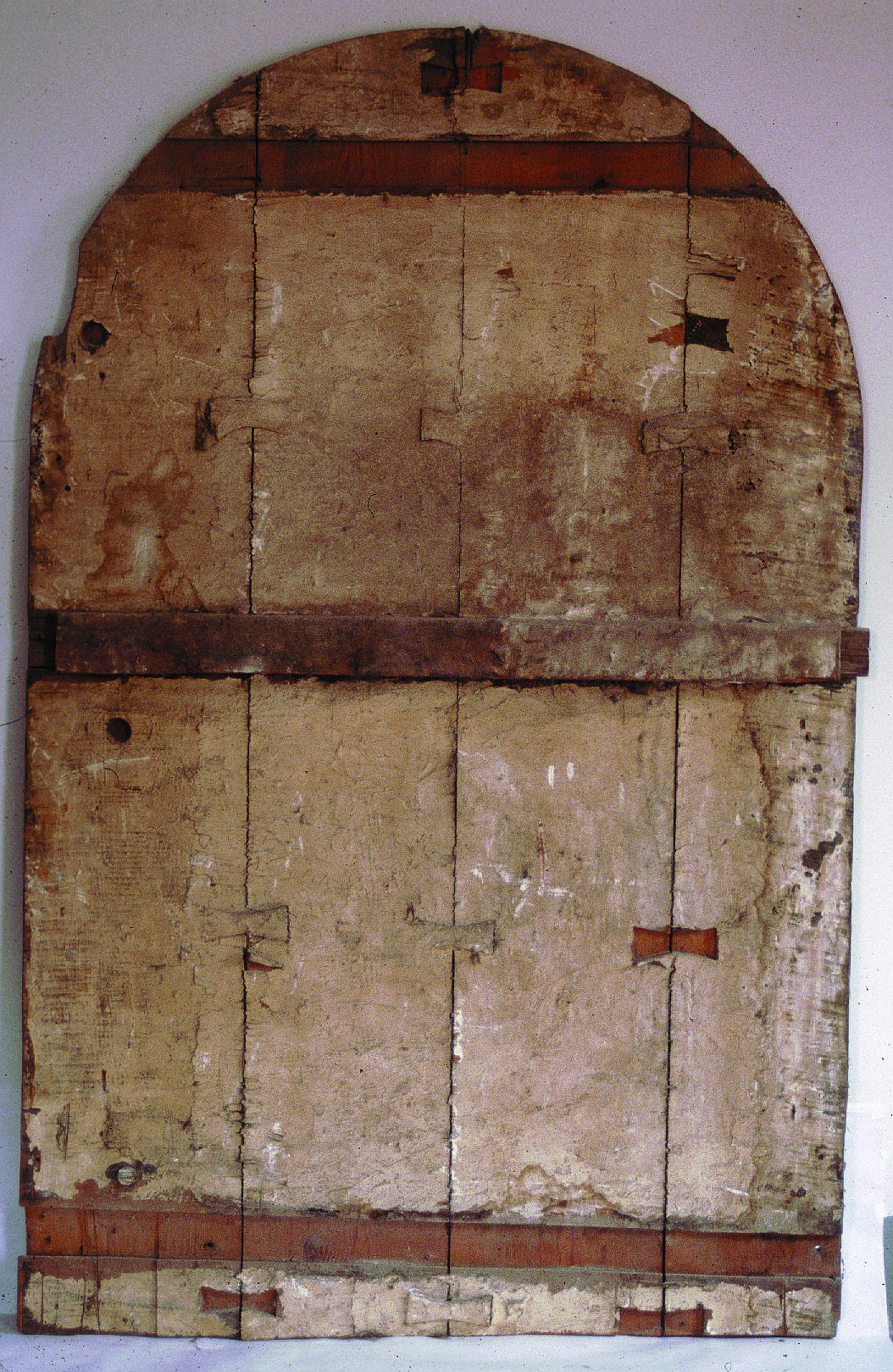 El retablo gótico debía de ser originalmente de mayores proporciones; de ahí las mutilaciones sufridas por las tablas en sus extremos. Éstas habían perdido algunos de sus travesaños, realizados sobre rebajes, sin embargo conservaban íntegra su superficie pintada. Un caso particular era el del cuadro de la Quinta Angustia, cuyos travesaños habían sido modernamente claveteados a través de la policromía.