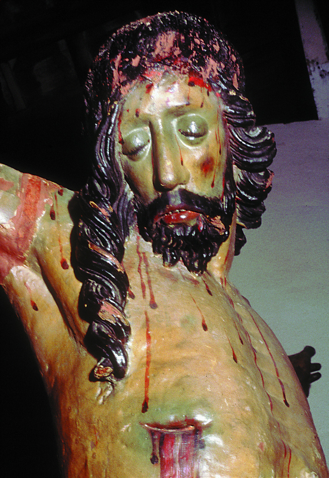 En general la policromía se encontraba deficientemente adherida. Repintes muy burdos sustentados por sucesivas capas de preparación ocupaban aproximadamente el 90% de la superficie de la imagen desfigurando, con su grosor excesivo, los volúmenes de la talla.
