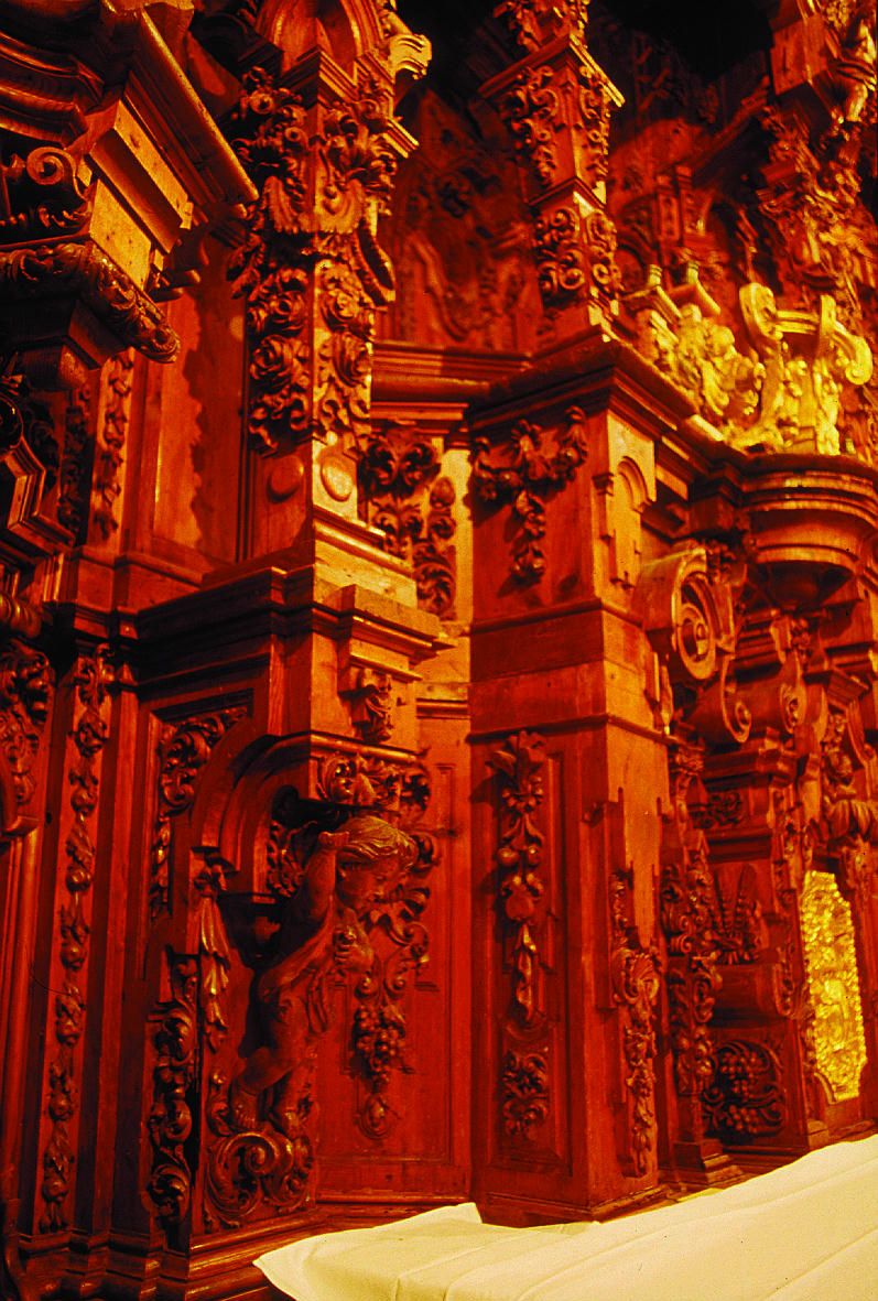 Las piezas agrietadas fueron tratadas con injertos de madera de balsa; las de mayor grosor, con cedro y balsa, en algunos casos reforzadas con toledanas de haya. Las uniones abiertas de tablas y, en general, de piezas que formaban entre sí módulos o conjuntos independientes, se limpiaron, se encolaron, se ensamblaron con espigas y se reforzaron también con toledanas de haya, al tiempo que se eliminaba, en su caso, el sistema de unión con barrotes clavados. Únicamente las piezas no decorativas de carácter estructural que se encontraban en pésimo estado de conservación hubieron de ser reemplazadas por otras de madera curada. Los clavos de hierro oxidados también se sustituyeron, en los casos de pérdida de función o degradación de la madera, por tornillos galvanizados o por espigas.