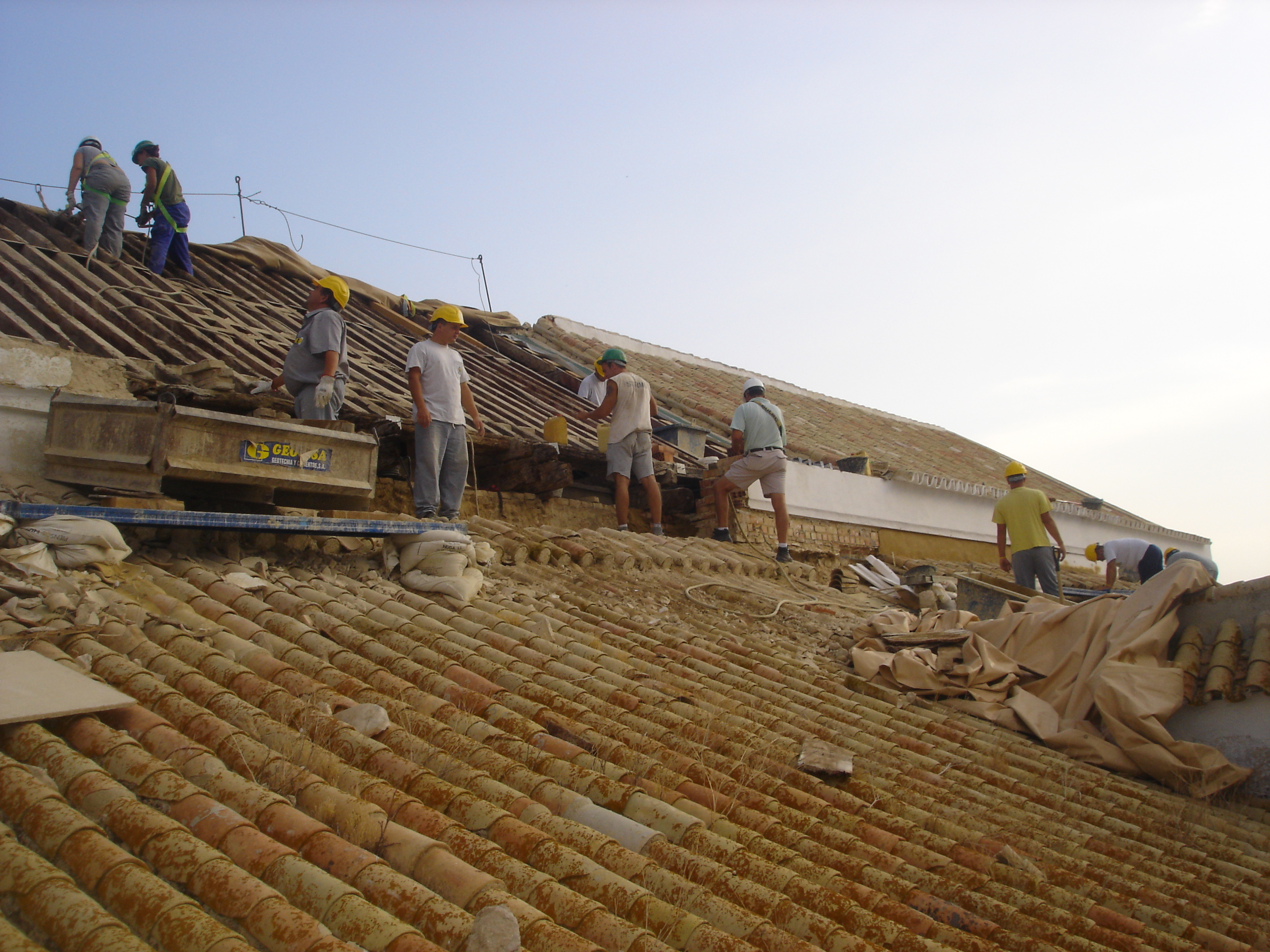 Se comienza por el desmontado, limpieza y acopiado de tejas para su reutilización en la mayor medida posible.