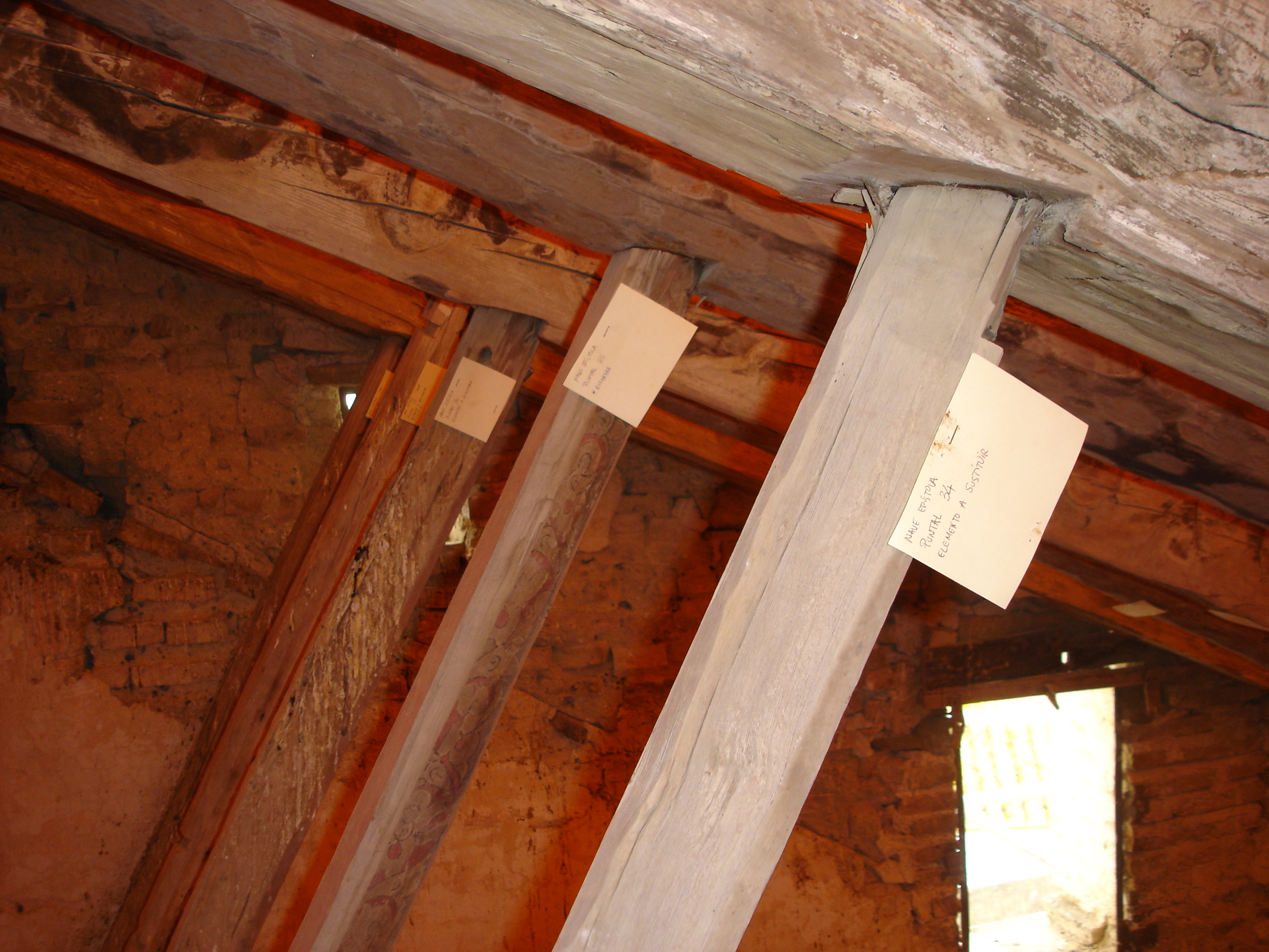 Se señaliza la tablazón que tenga restos de policromías , antes de proceder a retirar, para en caso de que proceda, volver a colocar, más adelante, en la misma posición.