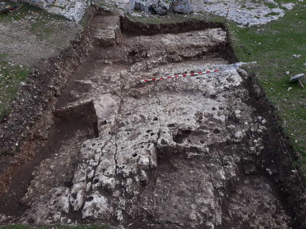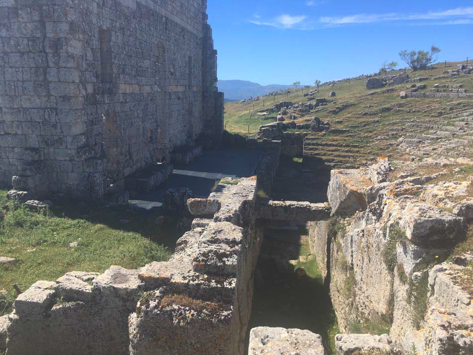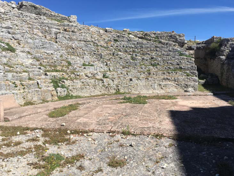 Existían también una serie de fracturas verticales que atravesaban por completo la roca que forma el frons pulpiti y conectan la orchestra con el foso existente bajo el pulpitum, que está a una cota inferior y que en cierto modo hace de sumidero.