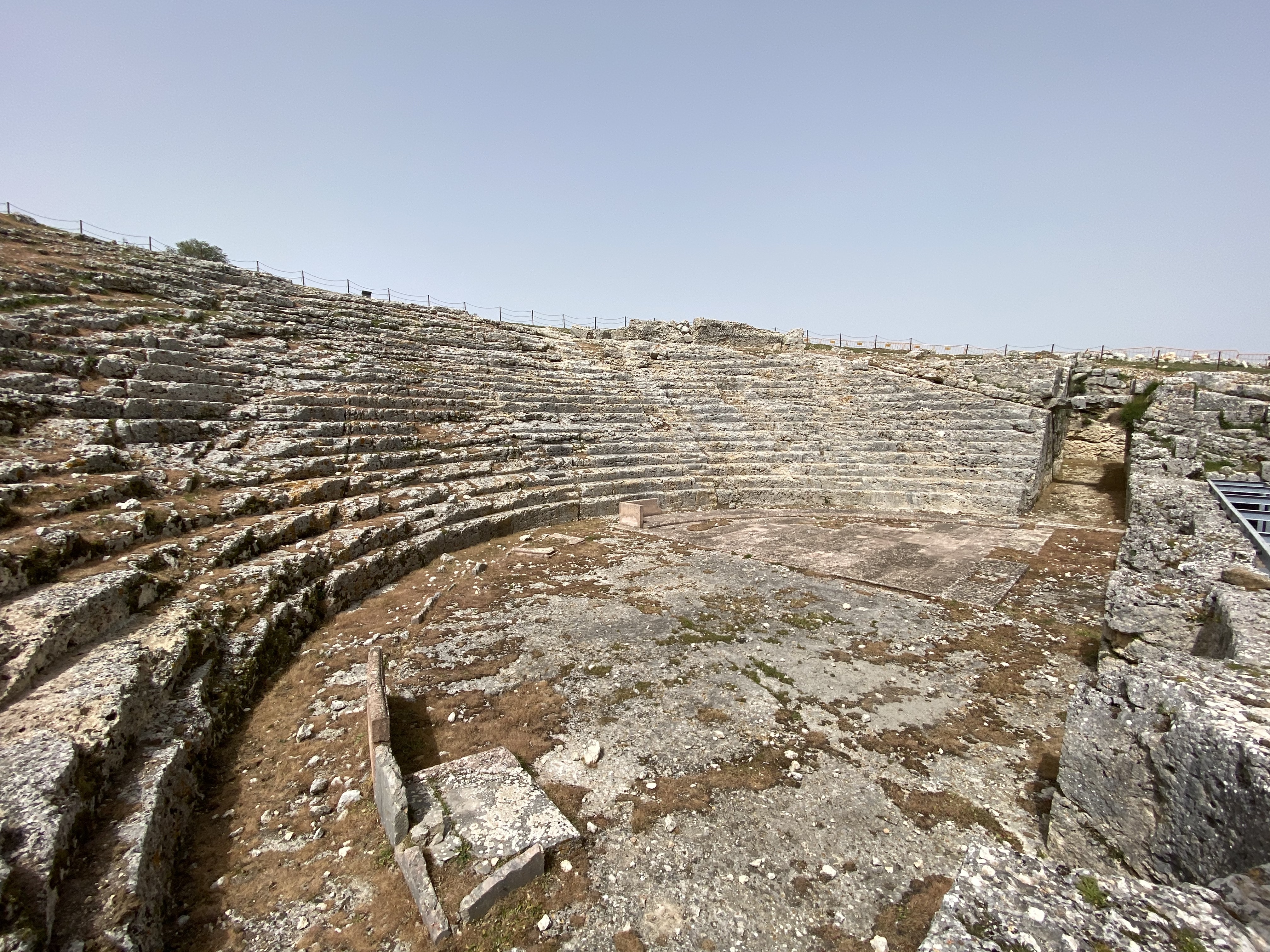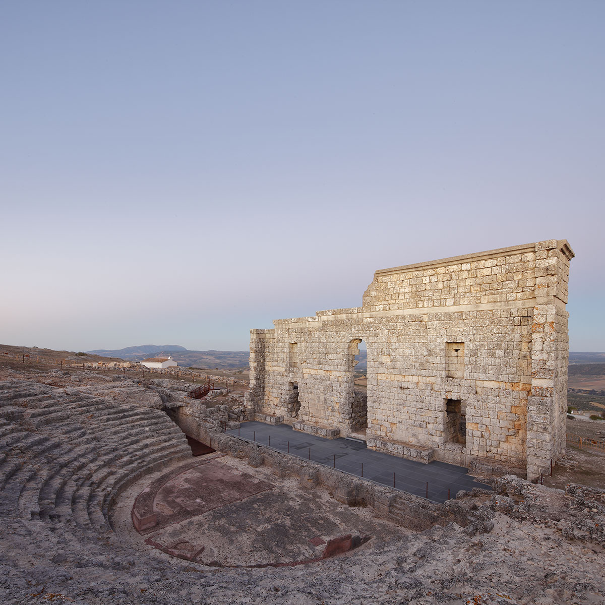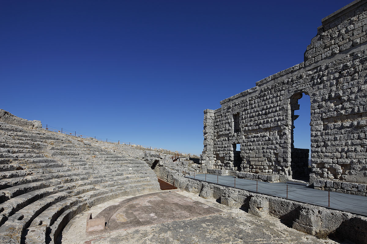 El teatro romano de Acinipo, como el de Sagunto y otros tantos dentro de España y fuera de ella, aprovecha el suave declive del terreno donde se asienta, a la manera griega.