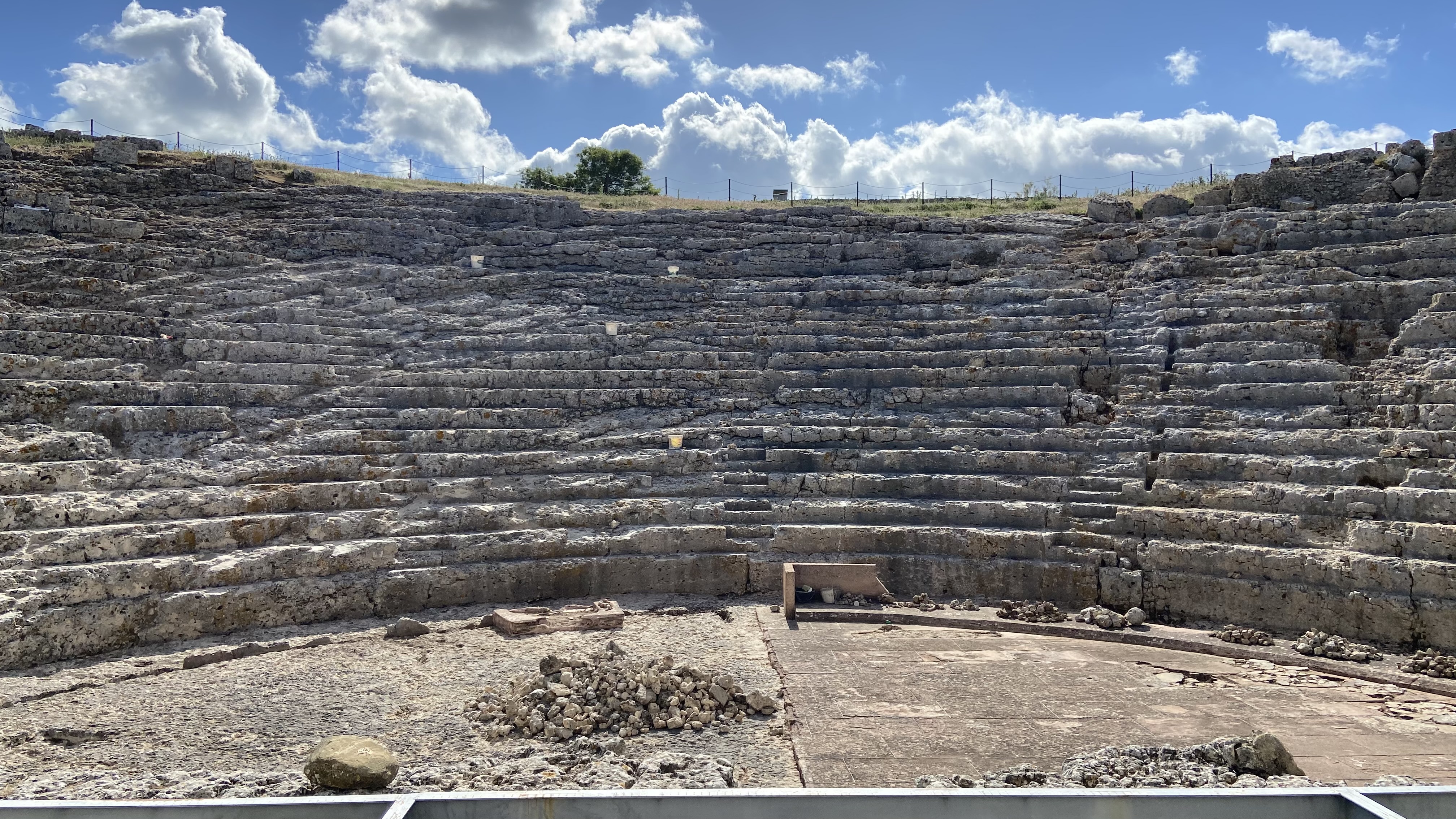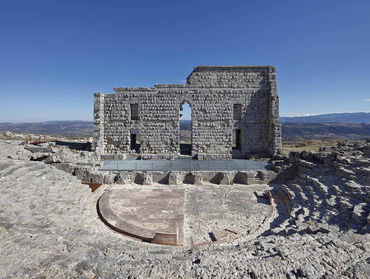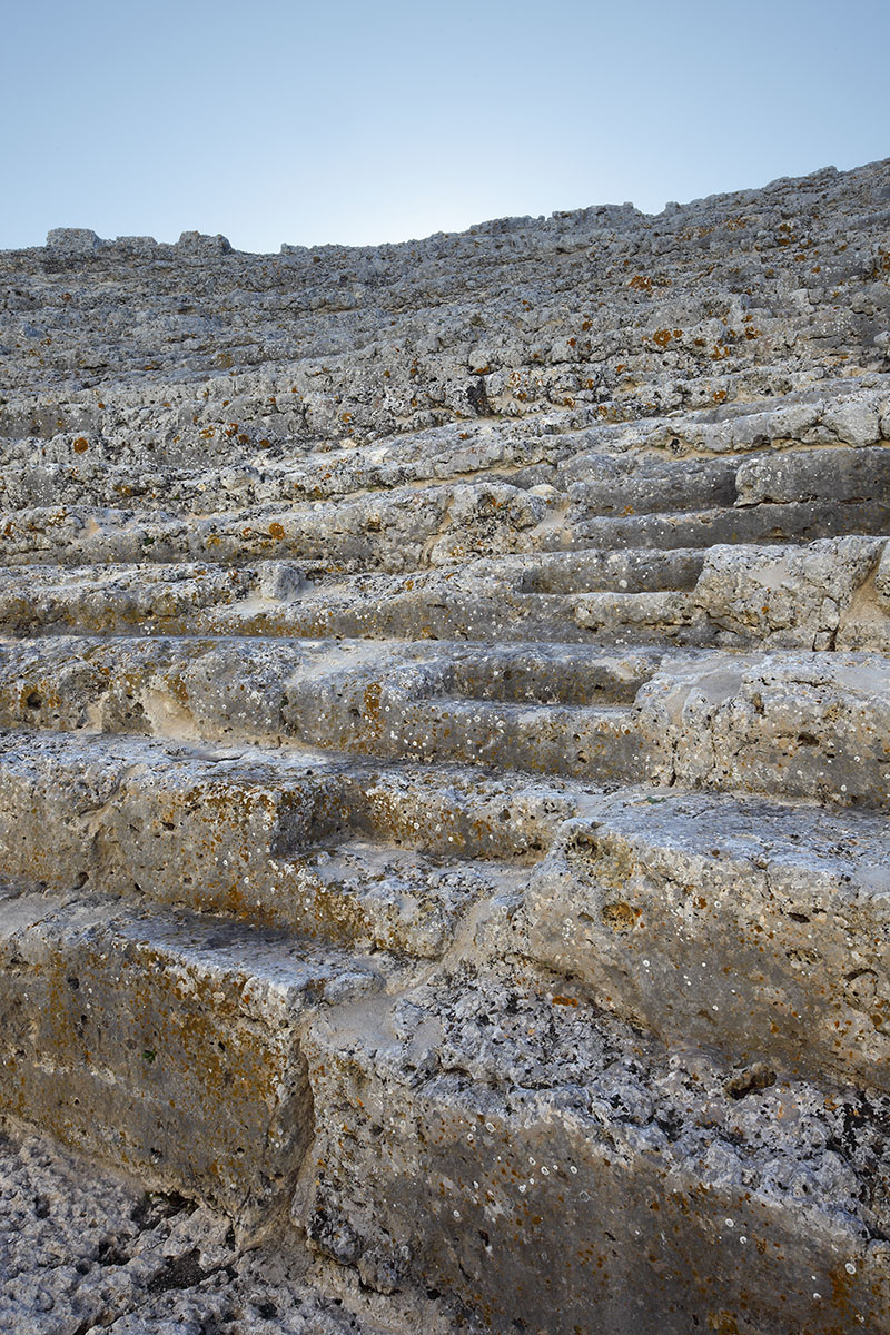 El teatro romano de Acinipo, como el de Sagunto y otros tantos dentro de España y fuera de ella, aprovecha el suave declive del terreno donde se asienta, a la manera griega.
