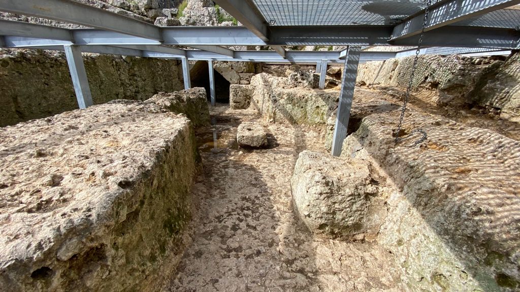 De los aditus, el aditus sur estaba cerrado (quizá ya desde época romana) y el aditus norte se encontraba practicable, pero se había visto afectado por grandes desprendimientos y una considerable cantidad de restos que impedían su correcta utilización, siendo el paso muy dificultoso, e incluso peligroso.