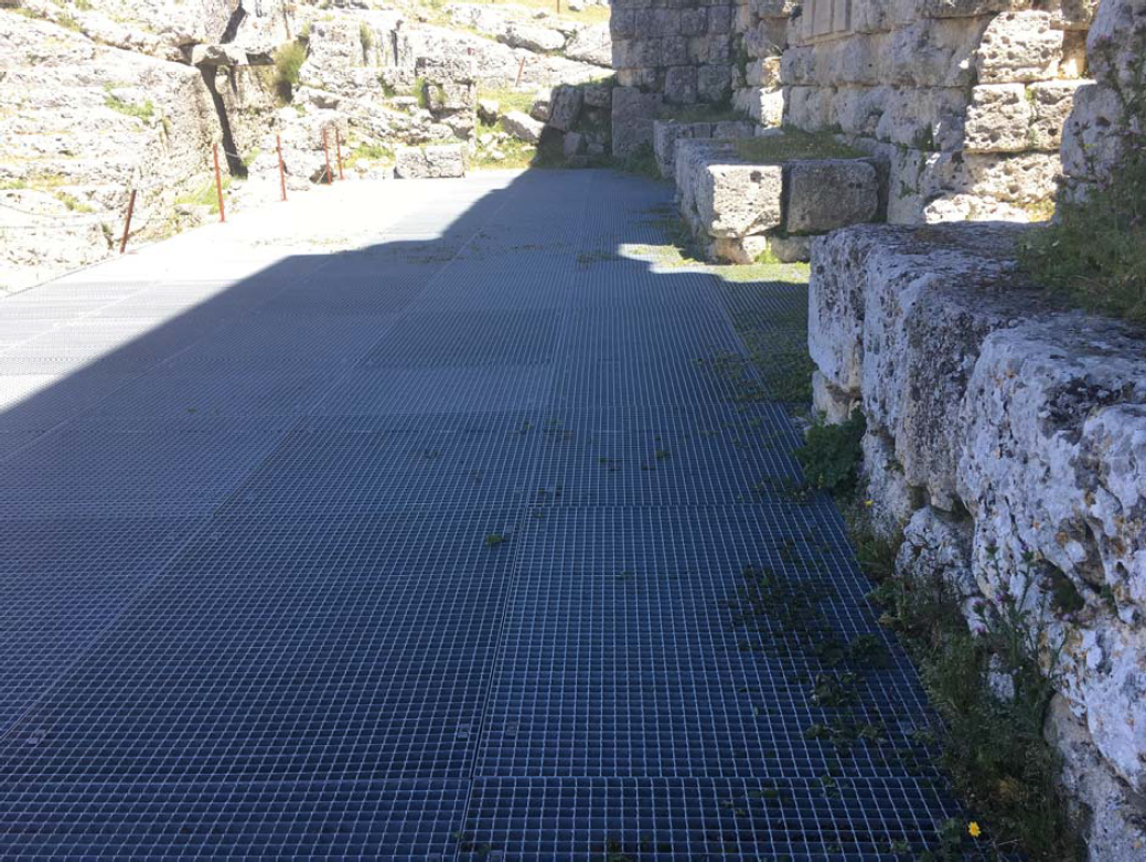 Por otro lado, el pulpitum, que originariamente debió ser de madera, en la intervención realizada en los años 80 se reconstruyó con una estructura metálica y una superficie transitable de tramex con el objetivo de permitir la visita al pulpitum y poder ver también el hyposcaenium.
