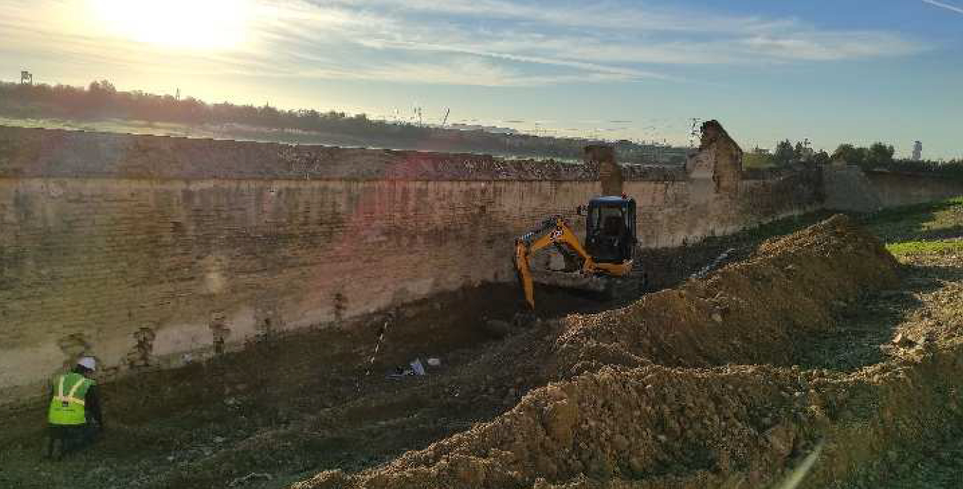 Monasterio de San Isidoro del Campo. Santiponce, Sevilla. Obras de restauración de la cerca oriental.