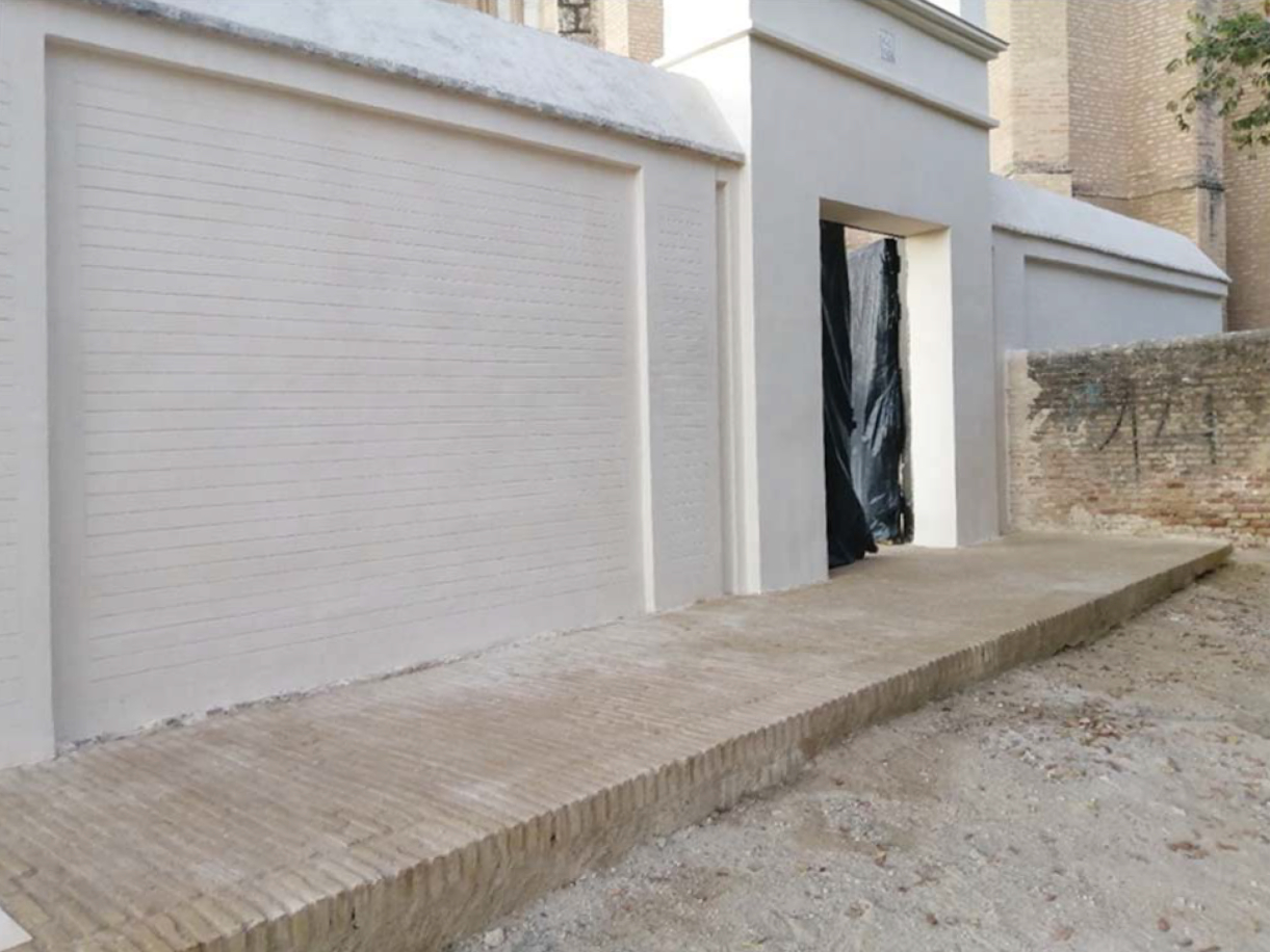 El proyecto perseguía, además de la reparación estructural de la cerca, la recuperación de su aspecto, para lo que se han conservado, en lo posible, revocos y estucados y se han realizado nuevos revestimientos, análogos, en las zonas en que desaparecieron o no puedieron conservarse.