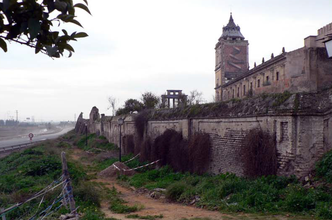Actualmente, el muro de la cerca corre paralelo a la carretera N-630, para cuya construcción fue necesario derribar un tramo de la tapia primitiva sustituyéndose esta por un muro de hormigón. El trazado de esta carretera coincide en gran medida con el de la antigua calzada romana que unía Híspalis e Itálica con Emérita Augusta, Legio Séptima Gemina (León) y Asturias, la conocida como Vía de la Plata, que en la edad media sirve de base al camino mozárabe que desde la baja Andalucía llega a Santiago de Compostela.
