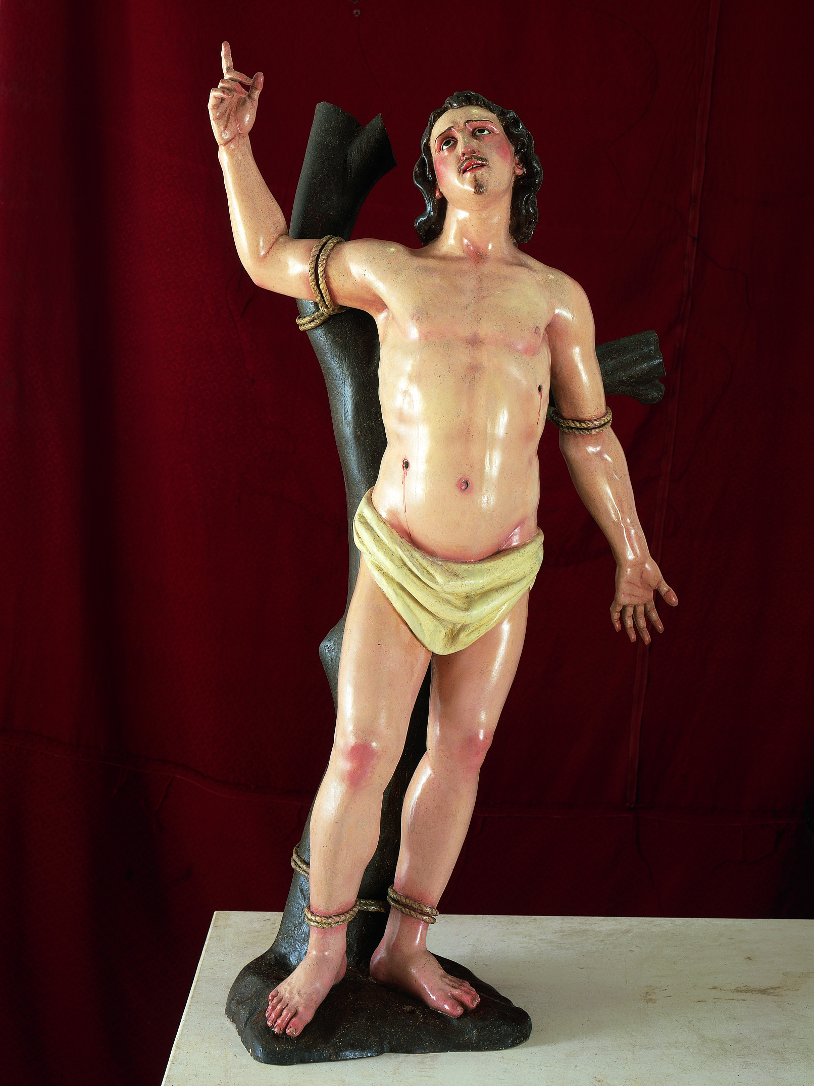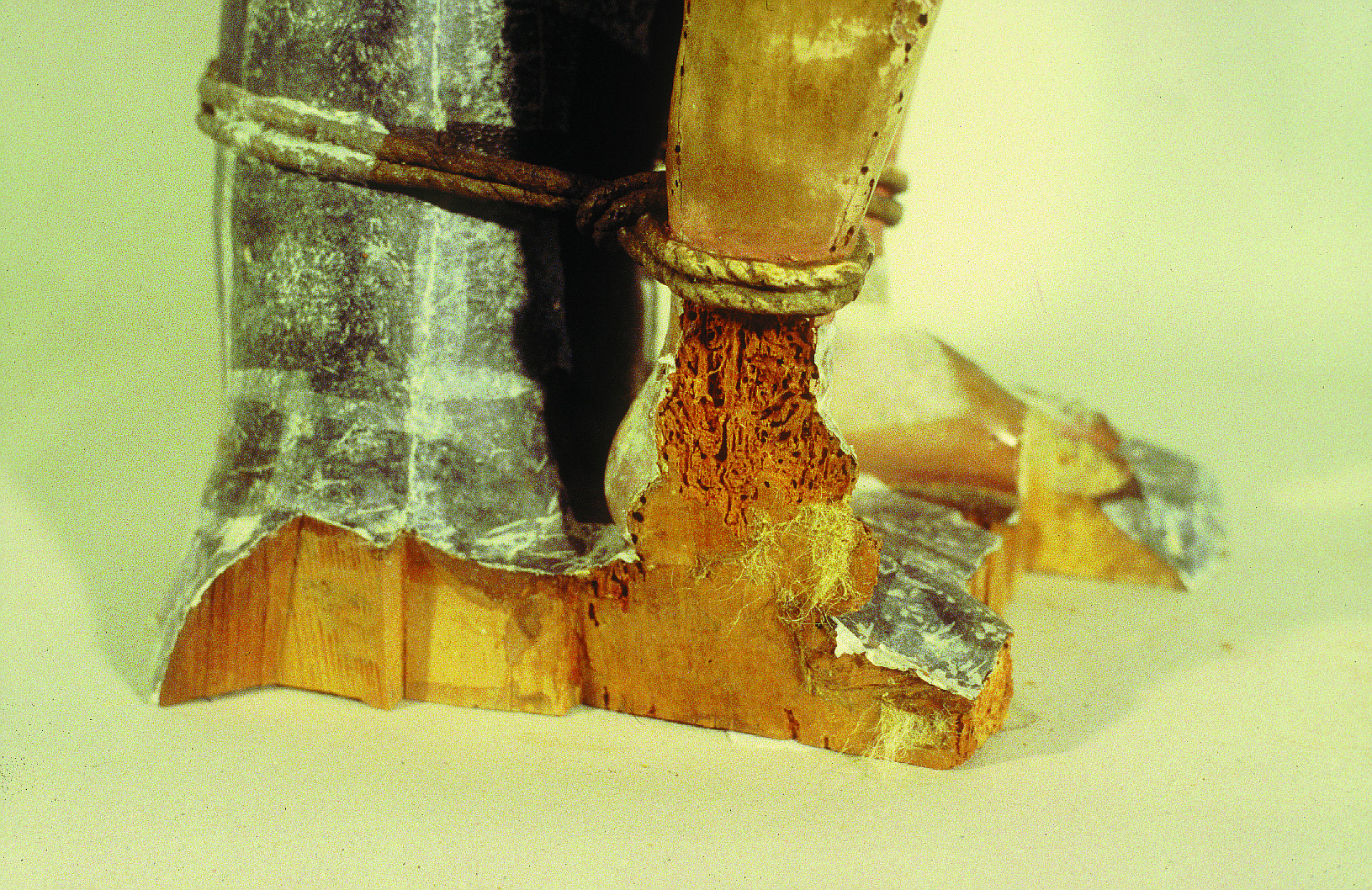 La base de la escultura había sido mutilada en algún momento al eliminarse las piezas más dañadas por los xilófagos y sustituirse por una tablazón, que resultó igualmente atacada.