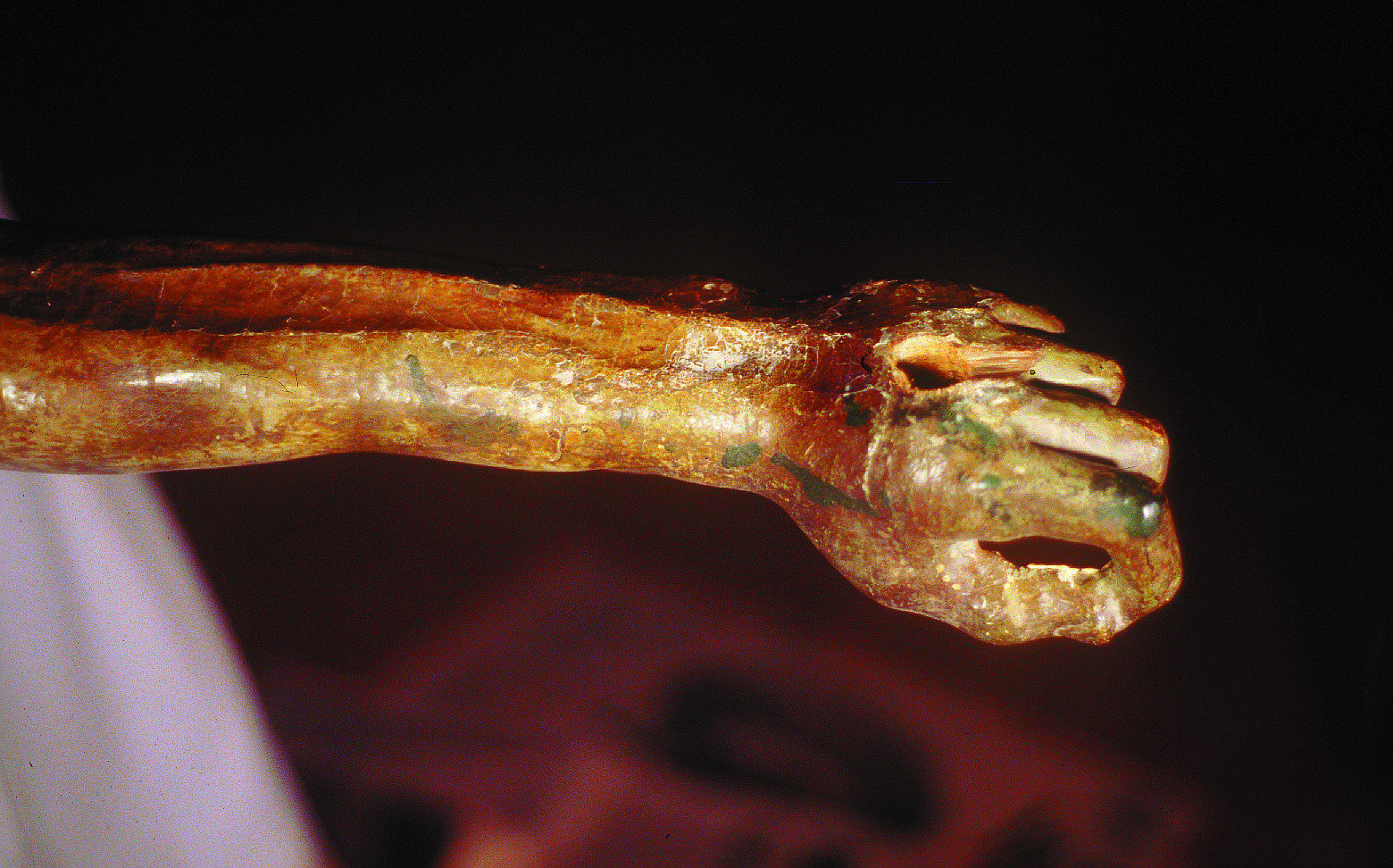 Los ensambles aparecían en buen estado de conservación, salvo el que une el brazo derecho con el hombro, donde la pérdida de adhesión de las colas había producido la separación de ambas piezas.