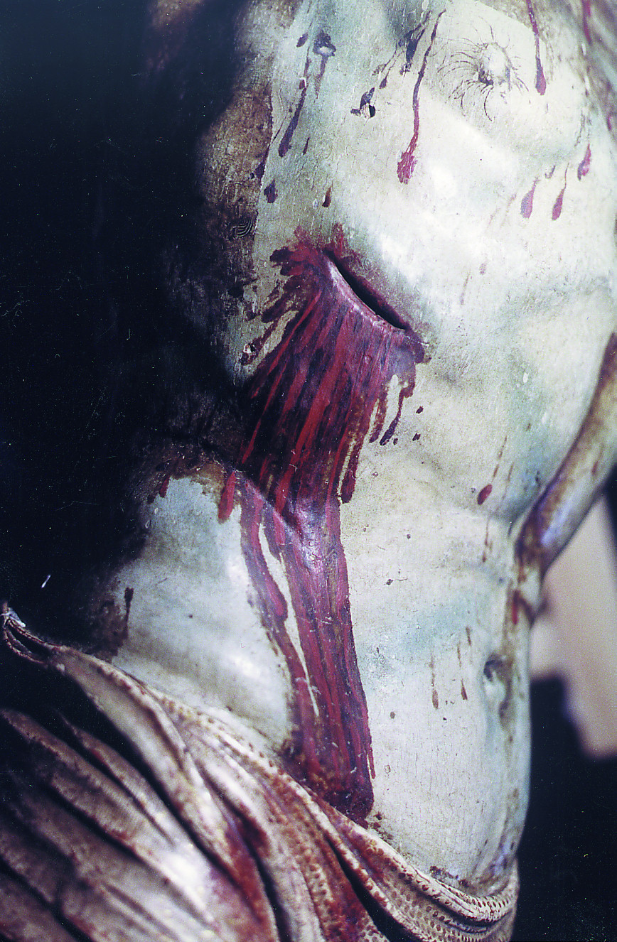 Otros problemas que se detectaban eran pérdidas por golpes y rozaduras, acumulación de elementos metálicos, sobre todo en la cabeza, como consecuencia de la utilización de una antigua peluca, oxidación de barnices, depósitos de suciedad y de cera y salpicaduras de pintura plástica verde ocasionadas al repintar la cruz.