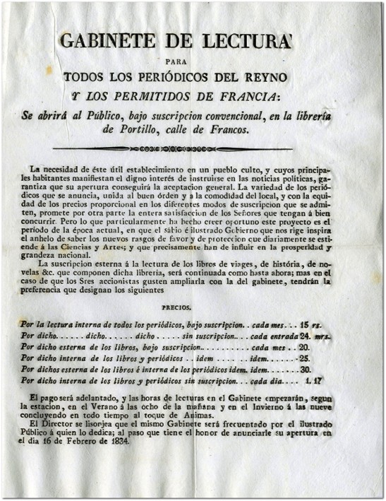 Los comienzos de la lectura pública en la provincia: un gabinete de lectura en Jerez (1834)