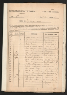 El documento que traemos este mes a la Sección de “Documento del Mes” es un expediente para el repartimiento de la contribución industrial entre los industriales que constituyeron el Gremio de Tejidos en la ciudad de Granada para el año 1913.