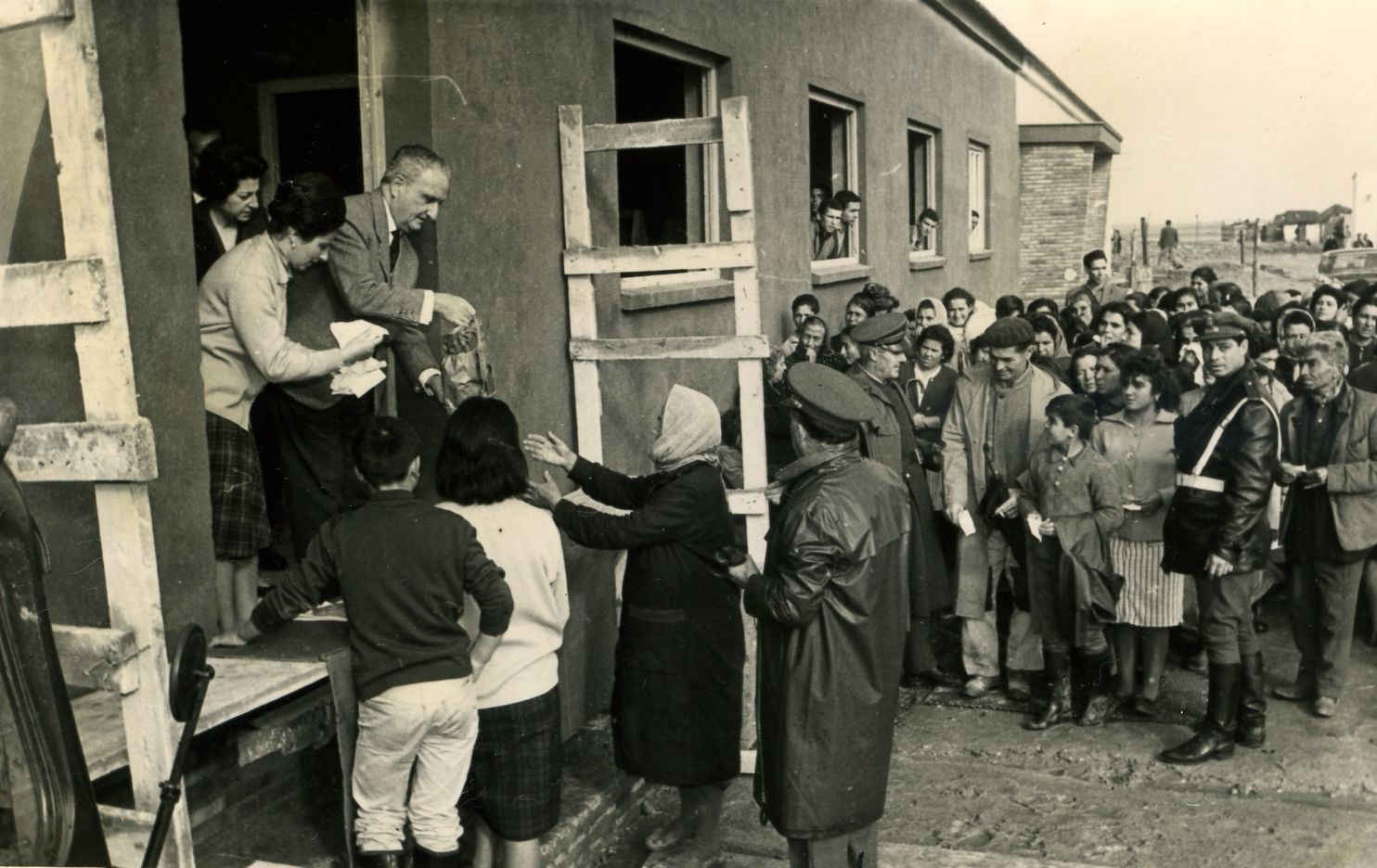 Campaña de Navidad. Distribución de ropa. Fecha diciembre de 1964. AHPH.Colección fotográfica de la Sección Femenina, signatura F-015/0208.