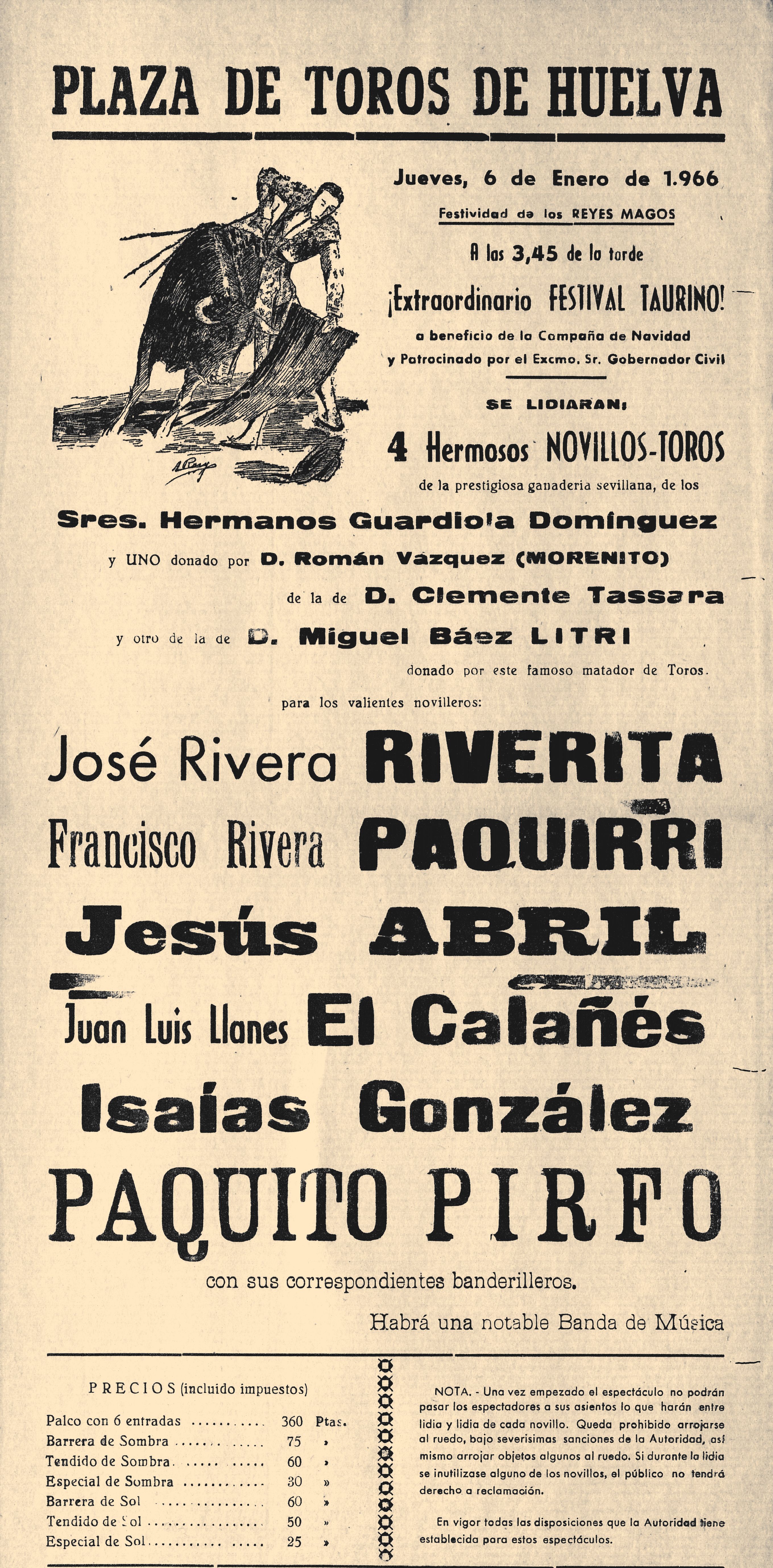 Teatro y toros, primero, y posteriormente el fútbol, deporte traido a España por los ingleses de mano de los obreros de la minería, fueron los espectáculos que tradicionalmente entretuvieron a la población onubense. Si bien los orígenes del teatro en la provincia son aún inciertos, así como los del toreo, exponemos algunos testimonios de actividad tetral ya en el siglo XVIII, a través de las denominadas “compañías de cómicos”, así como de la construcción y venta de una primera plaza de toros de madera el siglo pasado, cuya demolición en los terrenos que fueron del ferrocarril tuvo lugar pocos años antes de la construcción de la que aún hoy se levanta frente a las marismas.