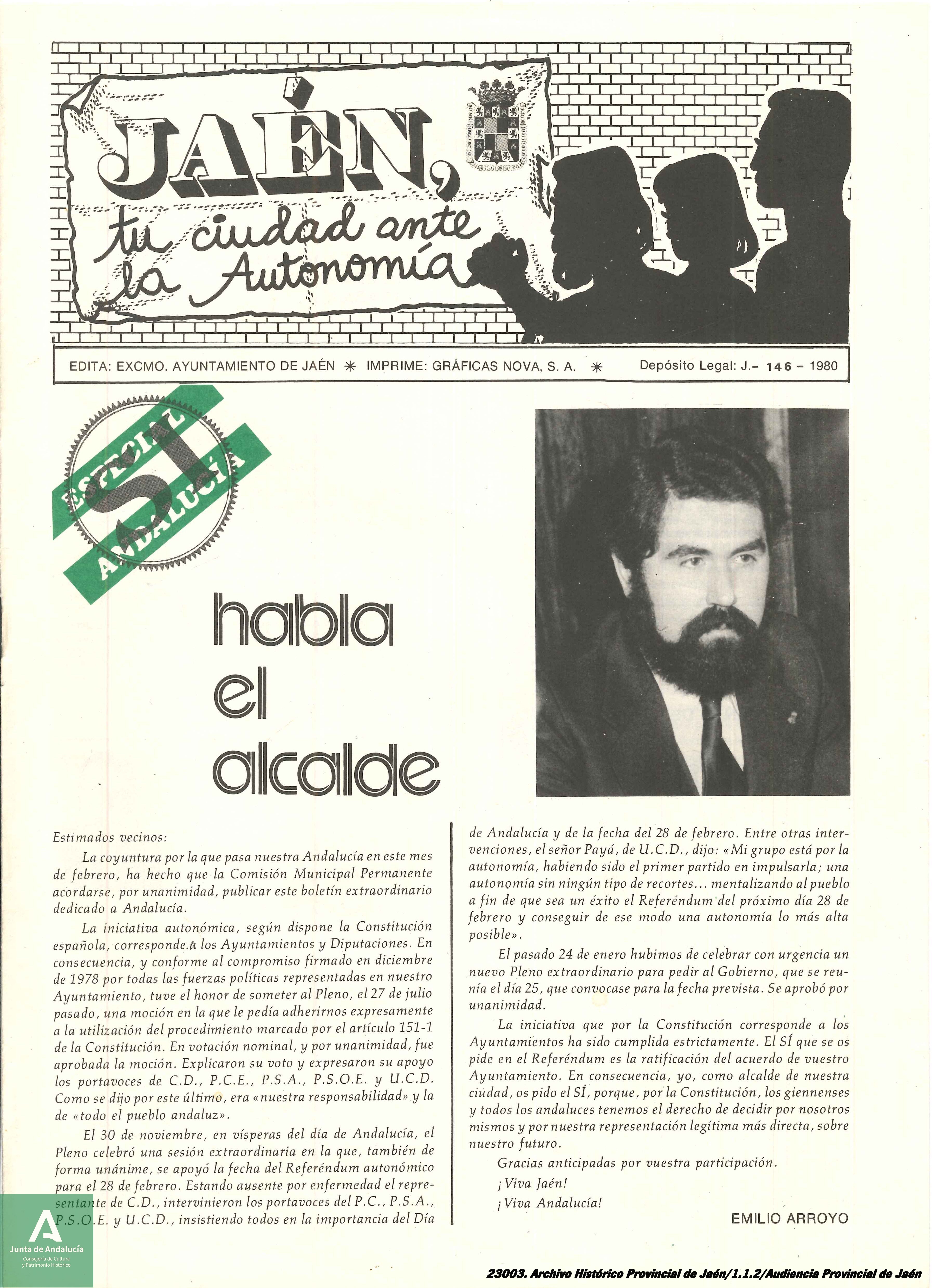 Para la celebración del Día de Andalucía, el día 28 de febrero, este año desde el Archivo Histórico Provincial de Jaén, y como venimos haciendo desde hace años, queremos recordar el desarrollo de nuestra autonomía en la provincia de Jaén, muchos vivieron los hechos que vamos a mostrar, pero no podemos olvidar que han pasado más de 40 años del inicio del Proceso Autonómico, y debemos dar a conocer a las nuevas generaciones estos hechos que por edad no vivieron.