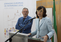 Rosa Aguilar presenta las Jornadas Europeas de Patrimonio, en presencia de Román Fernández-Baca, director del IAPH.
