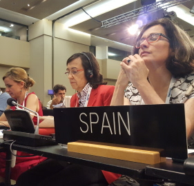 La consejera de Cultura, Rosa Aguilar, durante su intervención ante el Comité de Patrimonio Mundial.