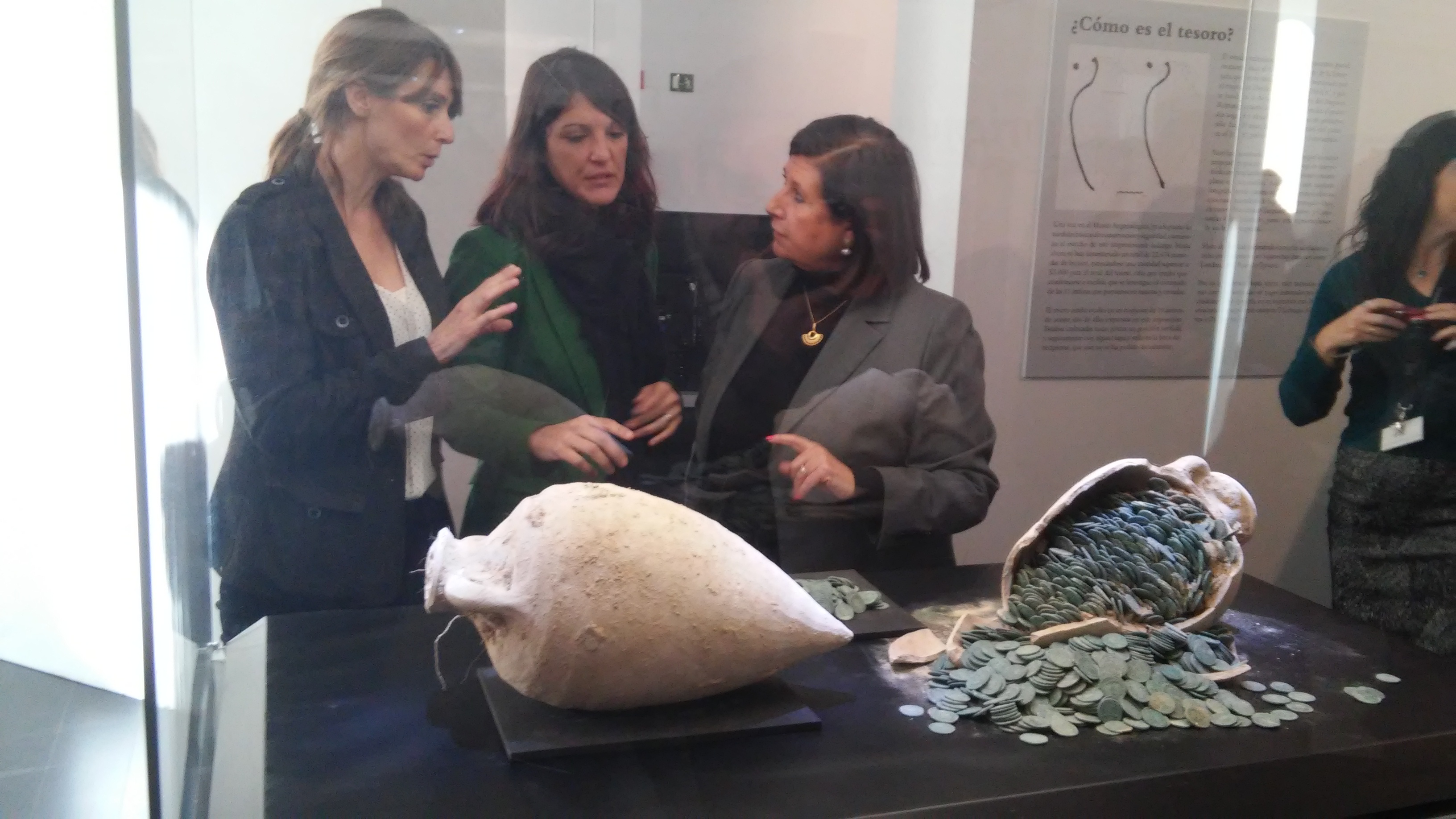La viceconsejera de Cultura, Marta Alonso, ha inaugurado hoy en el Museo Arqueológico de Sevilla la exposición temporal ‘Descubriendo el tesoro de Tomares’, que mostrará por primera vez al público las monedas halladas en abril en esta localidad sevillana, uno de los hallazgos más importantes realizados en la provincia, el mayor conjunto de monedas romanas descubierto en España y uno de los mayores del mundo. La muestra podrá verse hasta el 10 de septiembre de 2017 en la sala de exposiciones temporales del Museo.