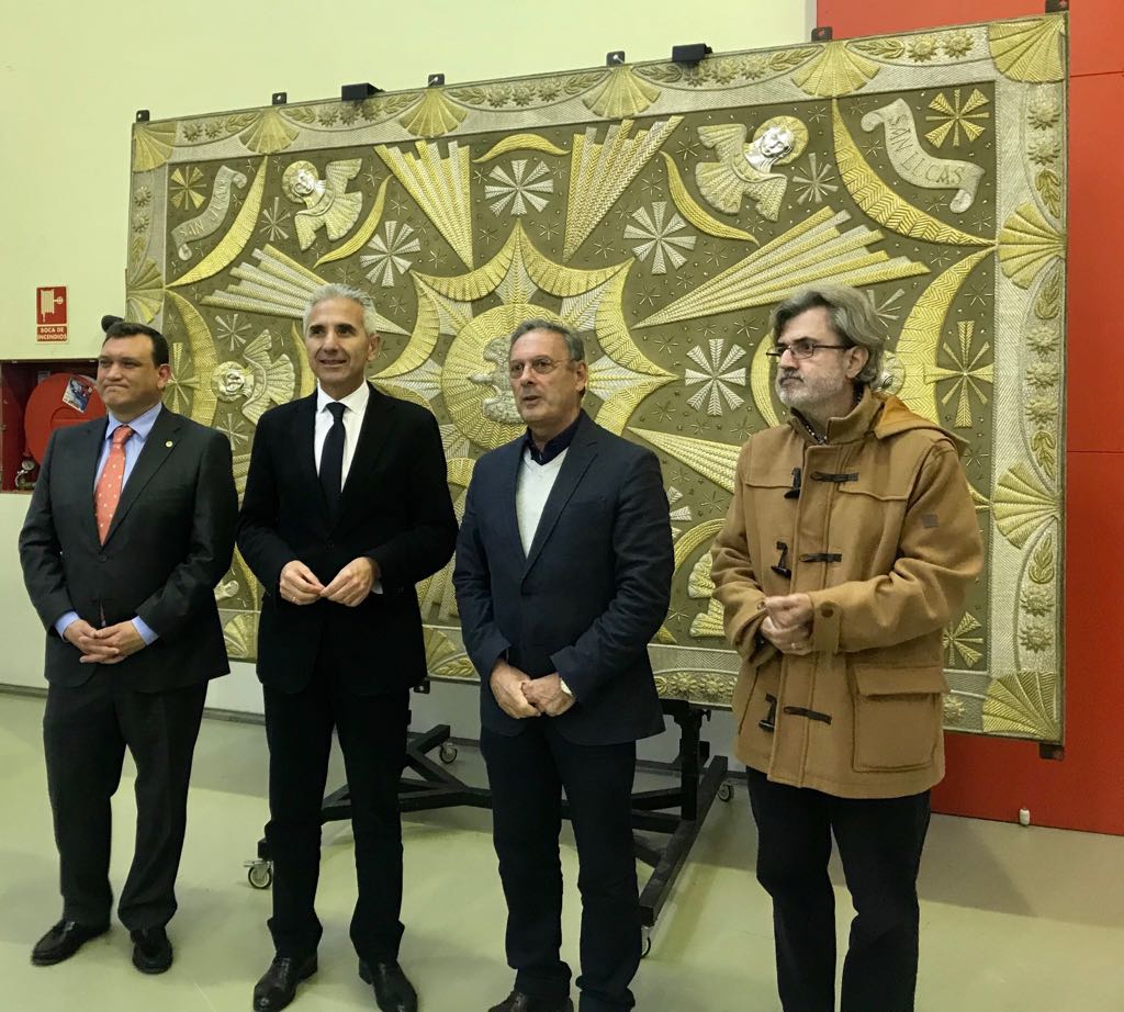 El consejero de Cultura de la Junta de Andalucía, Miguel Ángel Vázquez, y el alcalde de la Hermandad de los Negritos, Felipe Guerra, han presentado en la sede del Instituto Andaluz del Patrimonio Histórico los resultados de la restauración del palio procesional de la Virgen de los Ángeles. De esta forma se cierra un proceso de conservación llevado a cabo por el IAPH desde 2016, y que ha permitido la actuación integral en el palio, manto y saya procesionales de esta imagen devocional, realizados según proyecto del pintor Juan Miguel Sánchez (1900-1973).