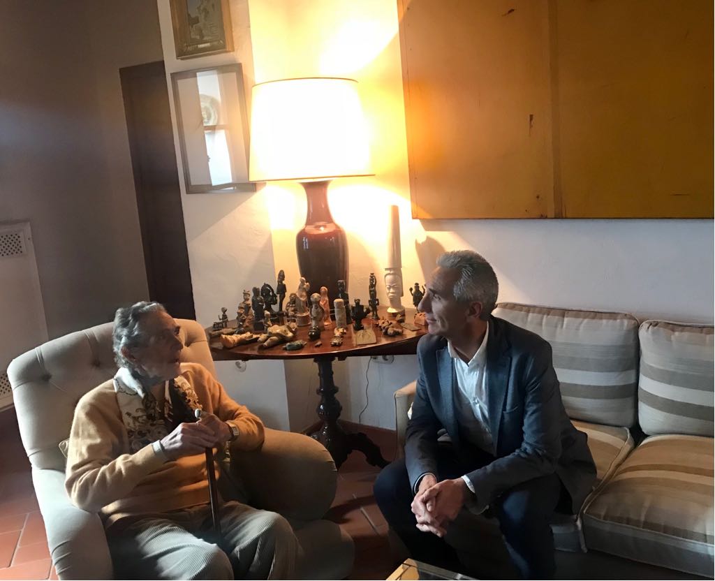 Antonio Gala y Miguel Ángel Vázquez charlan en un momento de la visita.