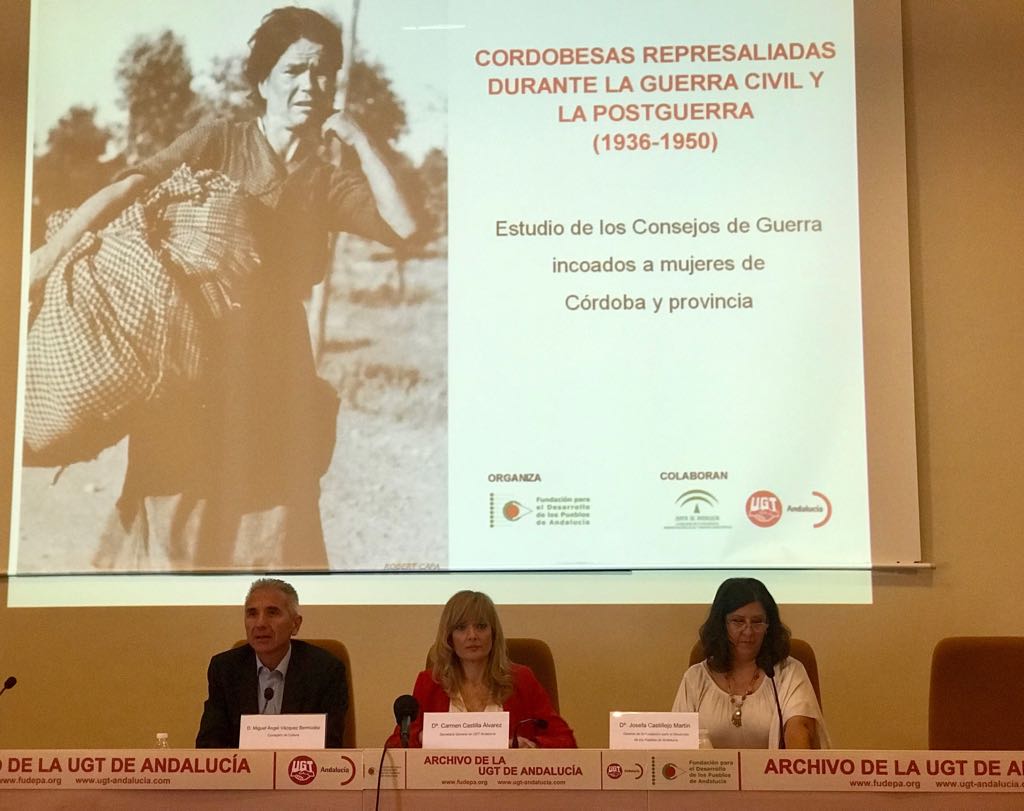 El consejero de Cultura, Miguel Ángel Vázquez, ha asistido hoy en Córdoba a la presentación del estudio ‘Mujeres cordobesas represaliadas durante la Guerra Civil y la Postguerra (1936-1950)’, de la investigadora Laura Ortiz, auspiciado por la Fundación para el Desarrollo de los Pueblos de Andalucía (Fudepa), nacida en el seno de la UGT. Durante el acto, Vázquez ha apelado a la necesidad de acometer la recuperación de la Memoria Democrática con una perspectiva de género.