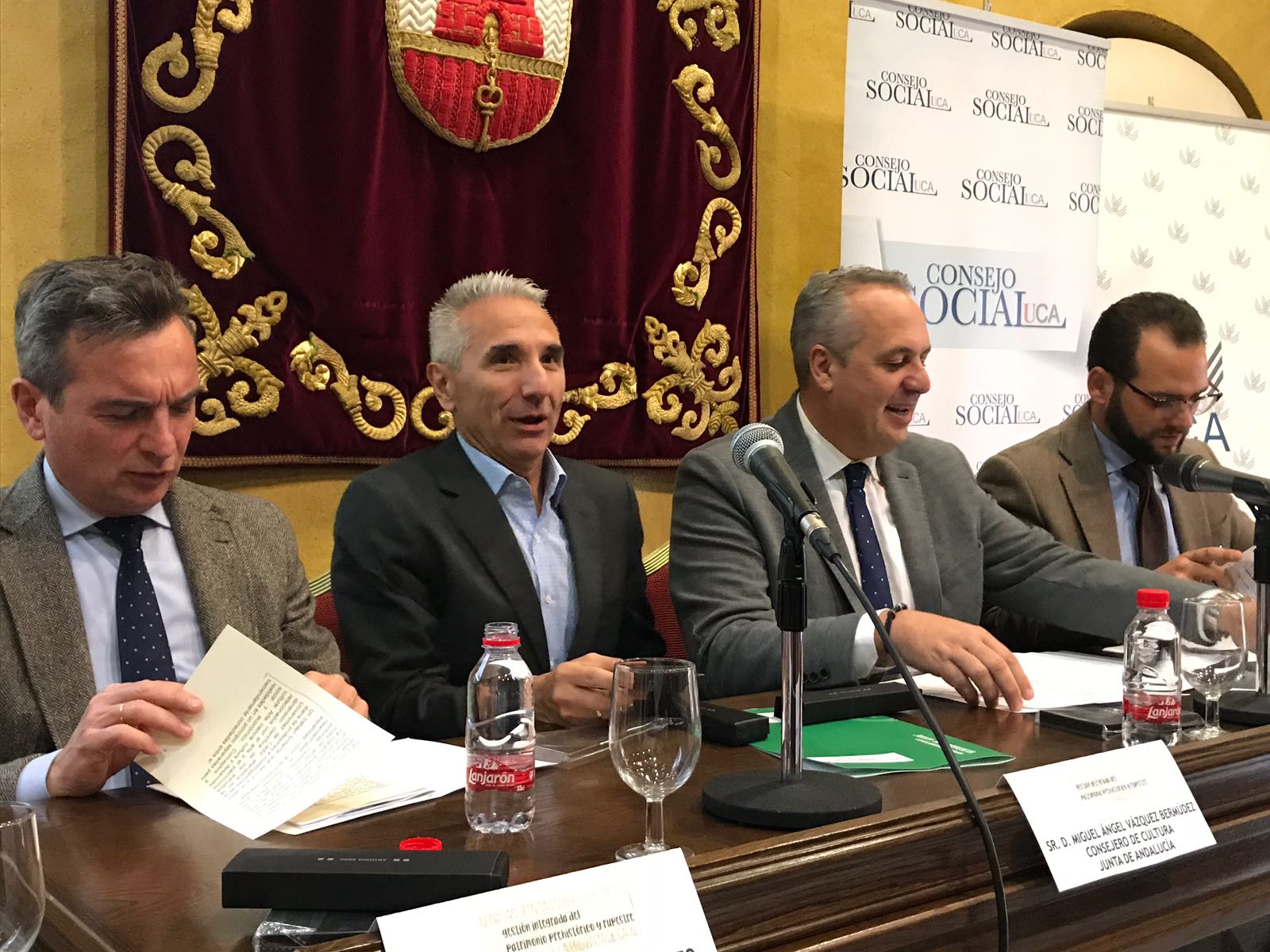 El consejero de Cultura, Miguel Ángel Vázquez, ha asistido hoy en San Roque (Cádiz) a una jornada de Patrimonio Prehistórico y Arte Rupestre organizada por el Consejo Social de la Universidad de Cádiz. En este sentido, ha informado de que su departamento trabaja en la elaboración de un plan de arte rupestre para los próximos cinco años. El proyecto, desarrollado por la Dirección General de Bienes Culturales y Museos, cuenta con una dotación de 3,6 millones de euros, de los que un 27%, casi un millón de euros, irá destinado a los 20 yacimientos rupestres de la provincia de Cádiz.