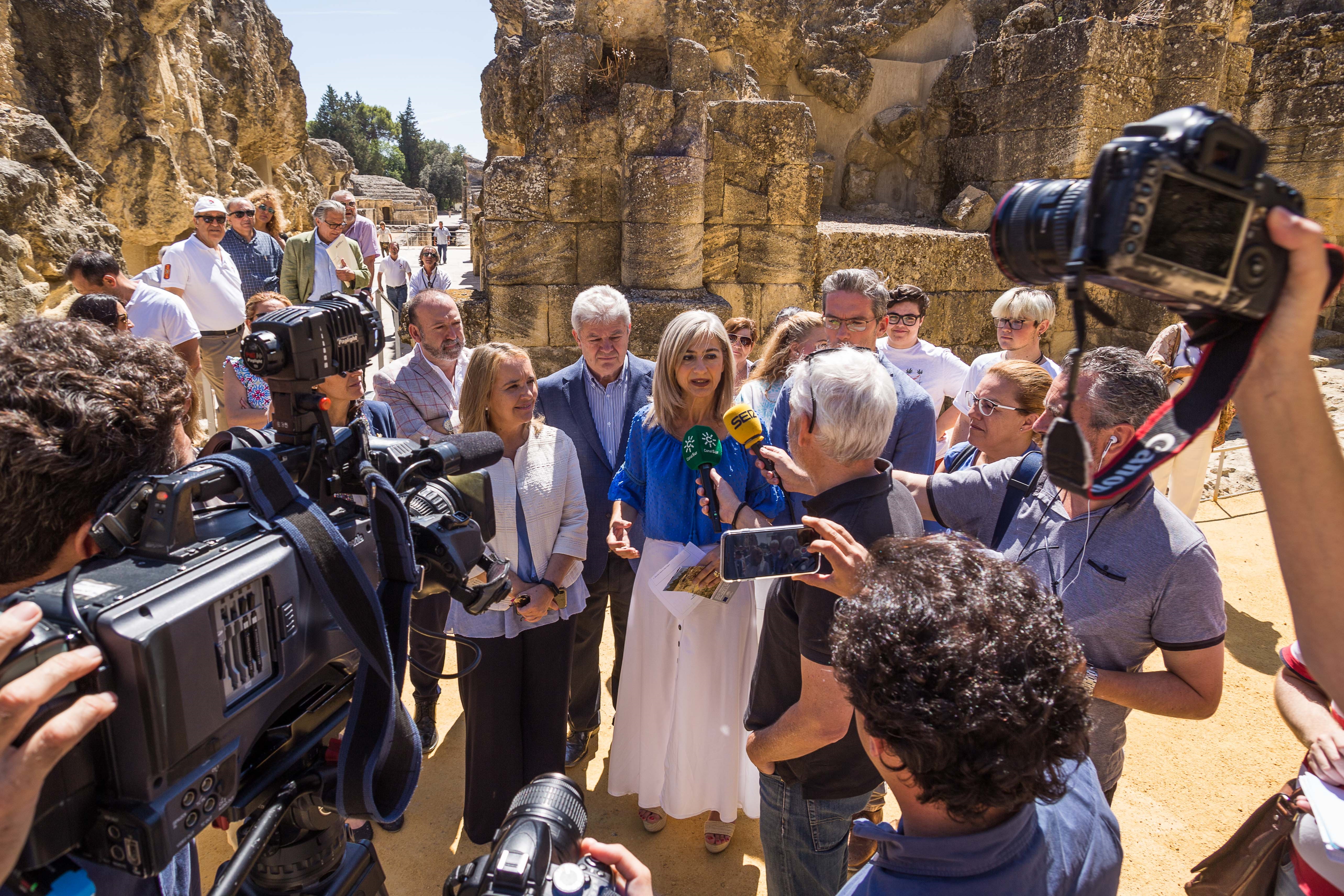 En la imagen, la consejera de Cultura y Patrimonio Histórico atienda a los medios de comunicación en su visita a Itálica