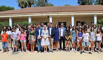 La consejera de Cultura posa con los jóvenes escritores en la inauguración de la Escuela de Verano