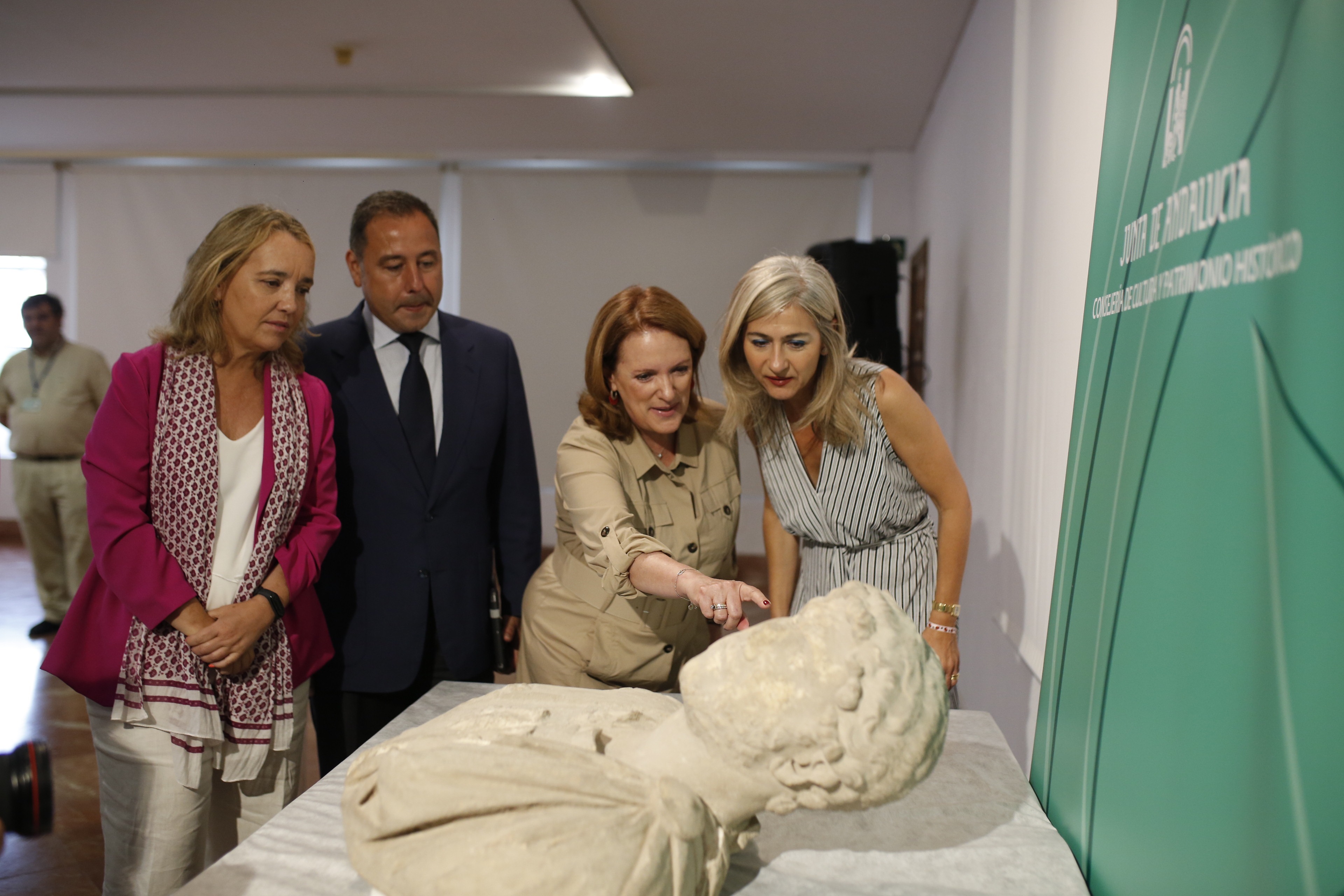 La consejera de Cultura y Patrimonio Histórico, Patricia del Pozo, ha presentado esta mañana en el Museo Arqueológico de Sevilla el busto romano del emperador Adriano incautado por el Equipo de Patrimonio de la Guardia Civil en una finca privada de la localidad de Écija (Sevilla) y depositado el 8 de julio en las instalaciones del museo para su adecuada custodia y su futura restauración.