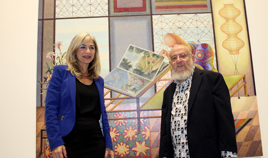 La consejera de Cultura, Patricia del Pozo, y Guillermo Pérez Villalta, en la presentación de la exposición del artista gaditano en el C3A