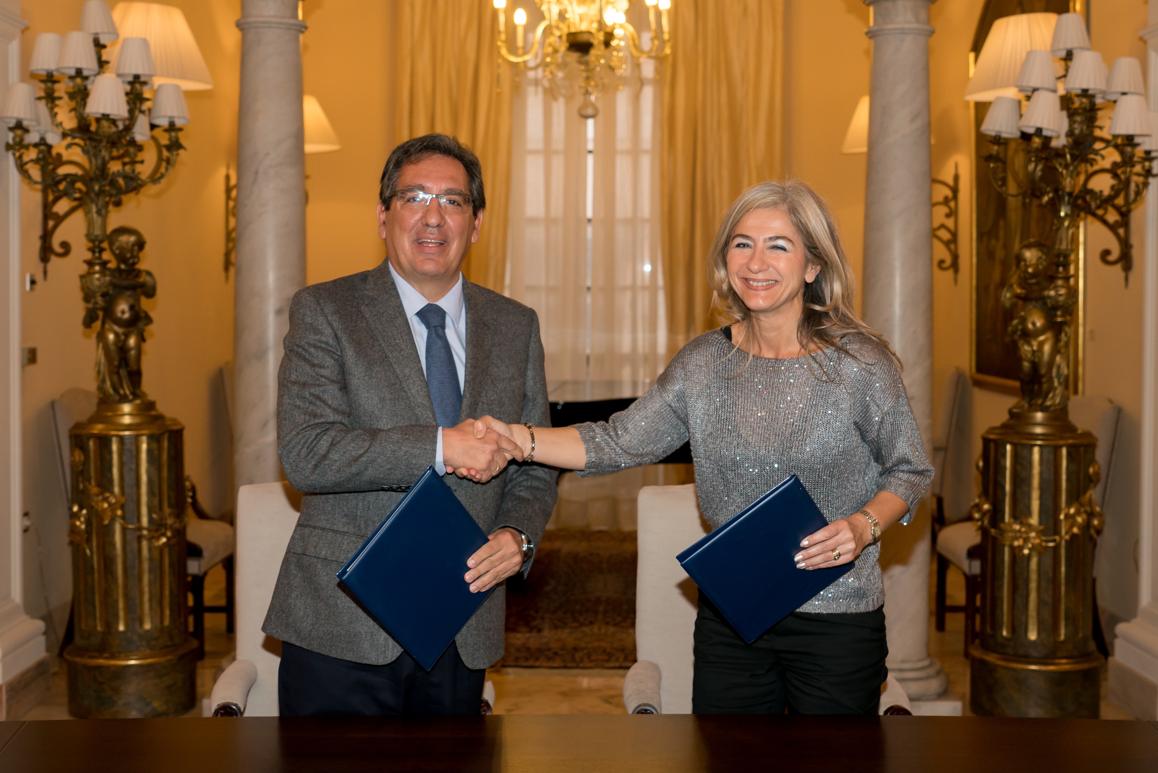 Patricia del Pozo, consejera de Cultura y Patrimonio Histórico de la Junta de Andalucía en representación de la Fundación Pública Andaluza Barenboim-Said, y Antonio Pulido, presidente de la Fundación Cajasol, han firmado un acuerdo de colaboración para realizar un encuentro orquestal de la Orquesta Joven de Andalucía (OJA) y la Fundación Barenboim-Said del 26 al 30 de diciembre de 2019 y dos conciertos los días 3 y 4 de enero de 2020 en el Gran Teatro de Córdoba y el Teatro de la Maestranza de Sevilla, respectivamente, bajo la dirección del maestro Pablo Heras‐Casado. Tanto la OJA como la Fundación Barenboim-Said están adscritas a la Consejería de Cultura y Patrimonio Histórico.