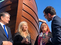 La consejera asiste a la botadura de la ‘Nao Victoria 500’, construida durante un año por un equipo de 60 personas en Punta Umbría (Huelva)