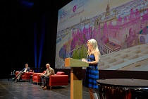 Patricia del Pozo durante la presentación de la nueva temporada de la ROSS en el Teatro Maestranza
