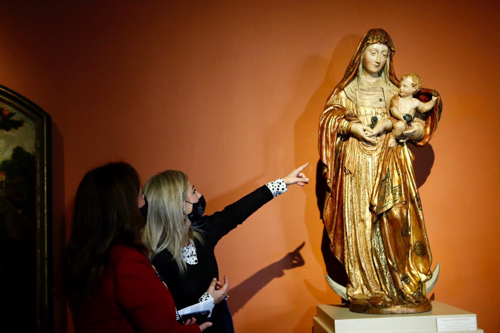 La consejera de Cultura, Patricia del Pozo, observa la talla de Roque Balduque en el Museo de Bellas Artes de Sevilla