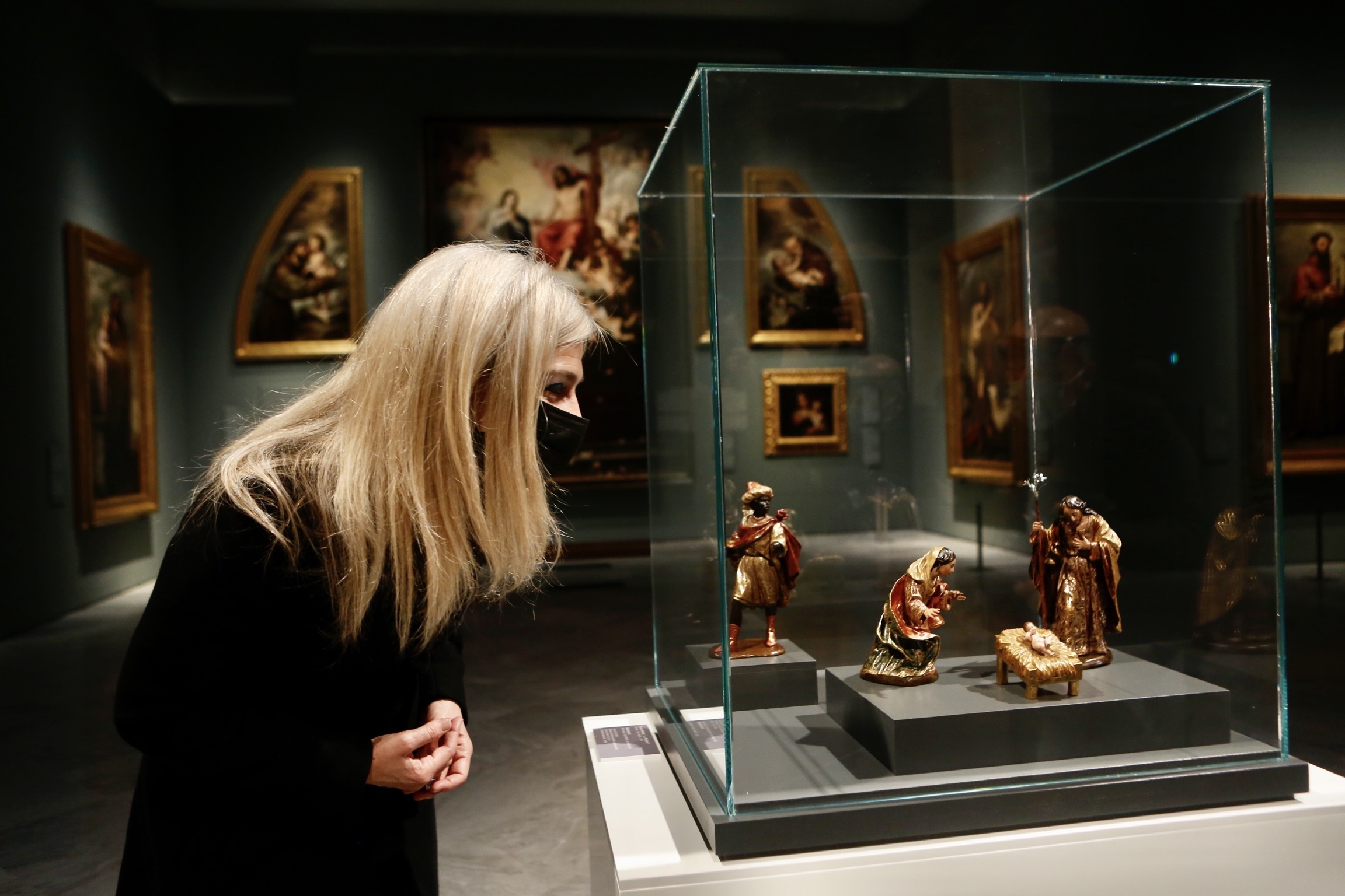 La consejera de Cultura y Patrimonio Histórico observa los detalles del nacimiento de La Roldana expuesto en el Bellas Artes