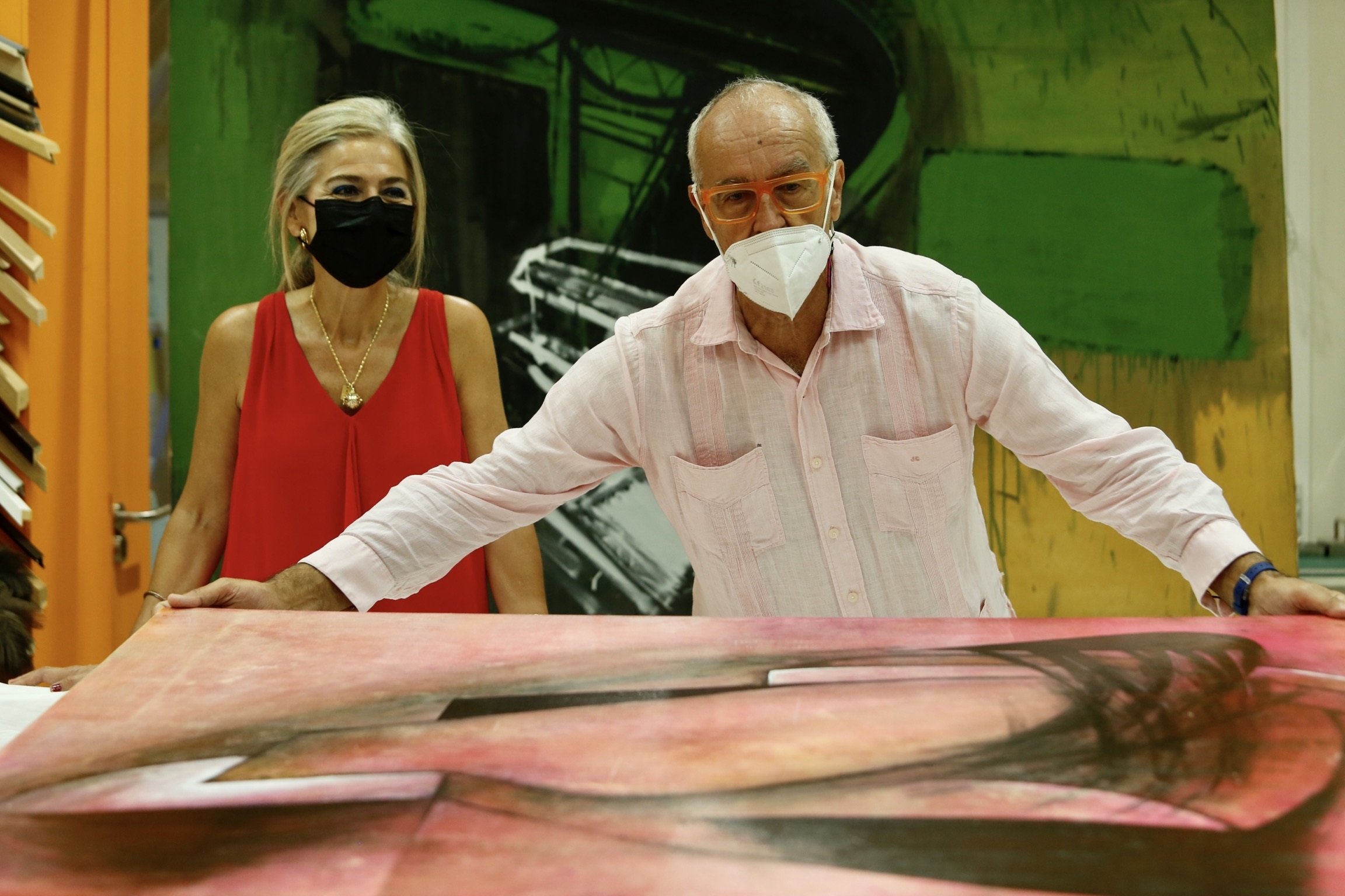 La consejera de Cultura, Patricia del Pozo, y el galerista Pepe Cobo, quien sostiene una de las obras donadas de Pepe Espaliú