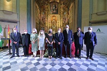 La consejera Patricia del Pozo, con los intervinientes en el homenaje a José María Pemán, entre ellos el hijo y el nieto del escritor
