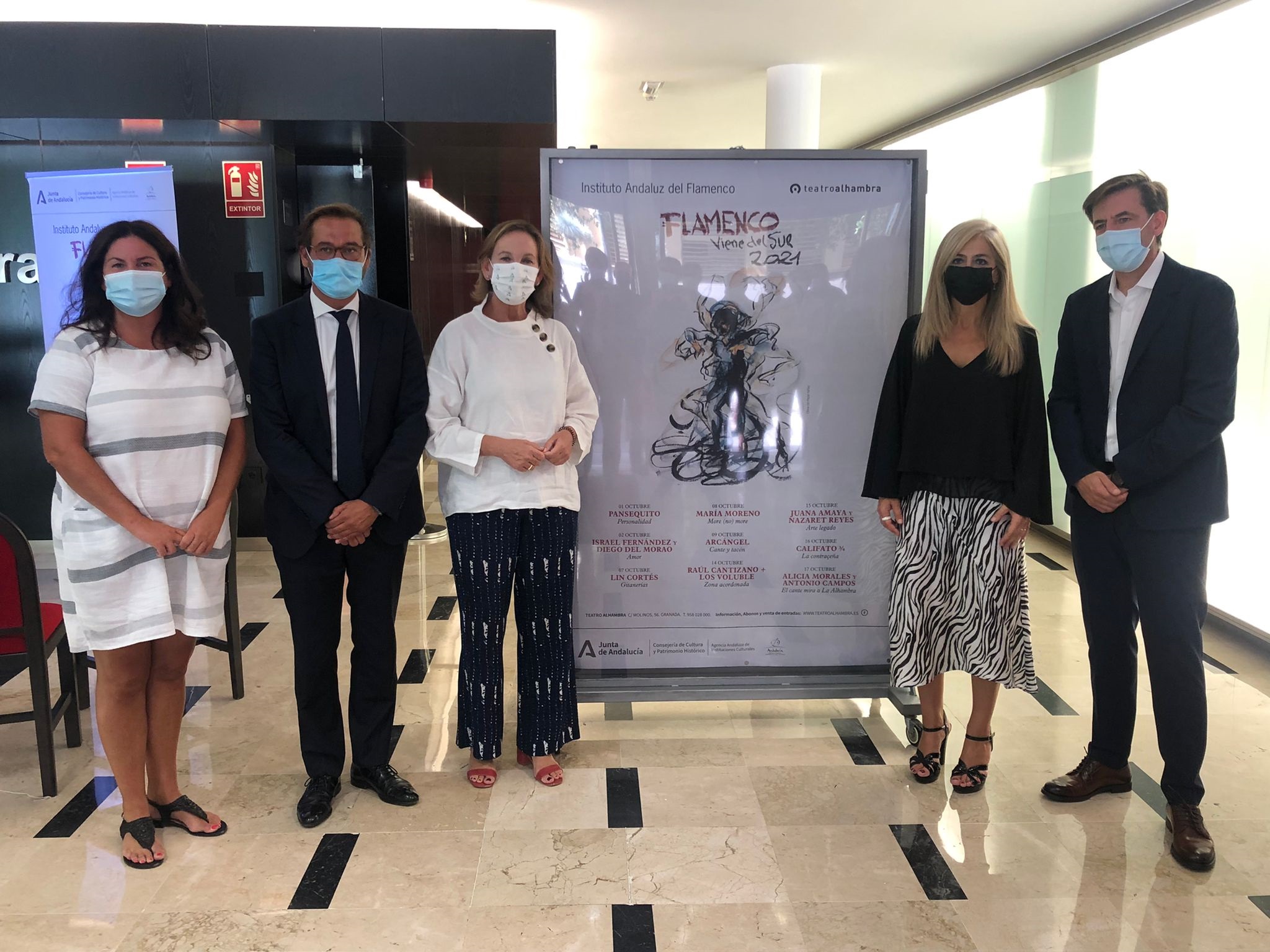La consejera de Cultura y Patrimonio Histórico, Patricia del Pozo, ha presentado junto al director del Instituto Andaluz del Flamenco (IAF), Cristóbal Ortega, la programación del ciclo ‘Flamenco Viene del Sur 2021’ en Granada, que en esta nueva edición concentra su programación del 1 al 17 de octubre en el Teatro Alhambra, evitando así la dispersión en el tiempo de ediciones anteriores.