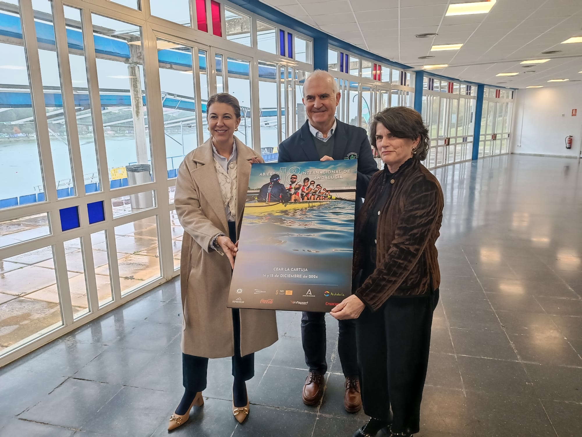 Esta mañana la instalación de alto rendimiento andaluz ha acogido la presentación del cartel de la competición, a la que ha asistido la Delegada Territorial de Cultura y Deporte en Sevilla, Carmen Ortiz; la Delegada de Deportes del Ayuntamiento de Sevilla, Silvia Pozo; y el presidente de la Federación Andaluza de Remo, Fernando Briones.
