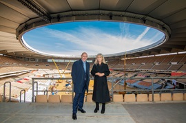 La consejera Del Pozo ha destacado que "la ampliación del aforo del Estadio La Cartuja es una apuesta estratégica del Gobierno de Juanma Moreno, que ha convertido un estadio que iba a ser declarado en ruina técnica por el PSOE en una referencia entre los grandes recintos deportivos de España". La segunda fase de los trabajos para ampliar el graderío del Estadio La Cartuja tiene un presupuesto de 15 millones de euros, de los que diez provienen de una aportación de la Junta de Andalucía en 2022 y el resto, a través de apalancamiento financiero de la sociedad gestora del Estadio.