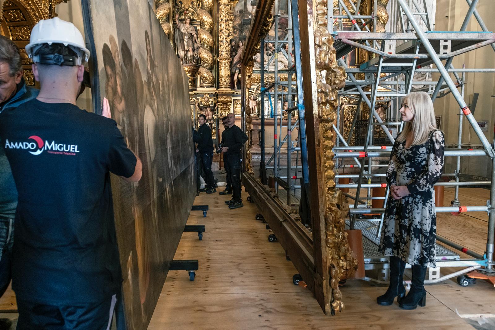La consejera de Cultura y Deporte, Patricia del Pozo, ha supervisado la operación de desmontaje de las obras de la Iglesia del Señor San Jorge y del Hospital de la Santa Caridad que se exhibirán a partir del 30 de junio en el Museo de Bellas Artes de Sevilla. La muestra, abierta hasta la primavera de 2026, profundizará en el discurso iconográfico ideado por Miguel Mañara en torno a las obras de misericordia.