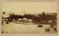 Un conjunto de tres tiendas montadas sobre una tarima en el Prado de San Sebastián, vistas de lejos y desde arriba. Así es la primera fotografía existente de la Feria de Abril de Sevilla. Fechada en 1859, fue tomada por el fotógrafo sevillano Francisco Leygonier y reproduce la caseta familiar de los duques de Montpensier.