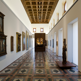 - Sede expositiva. Situada en la planta primera del Palacio de Carlos V, en ella se ubican los distintos espacios expositivos destinados a exposición permanente y a exposiciones temporales